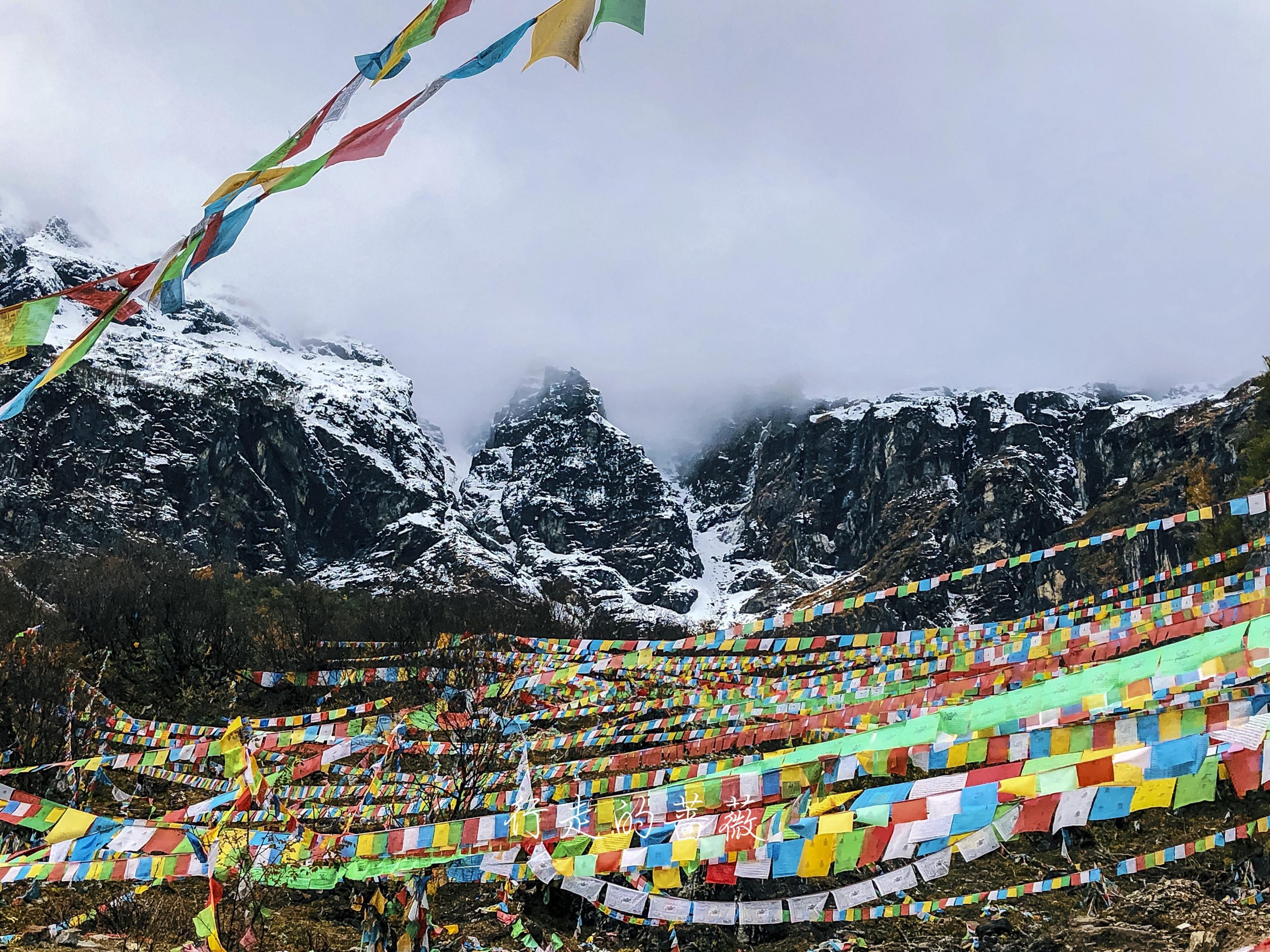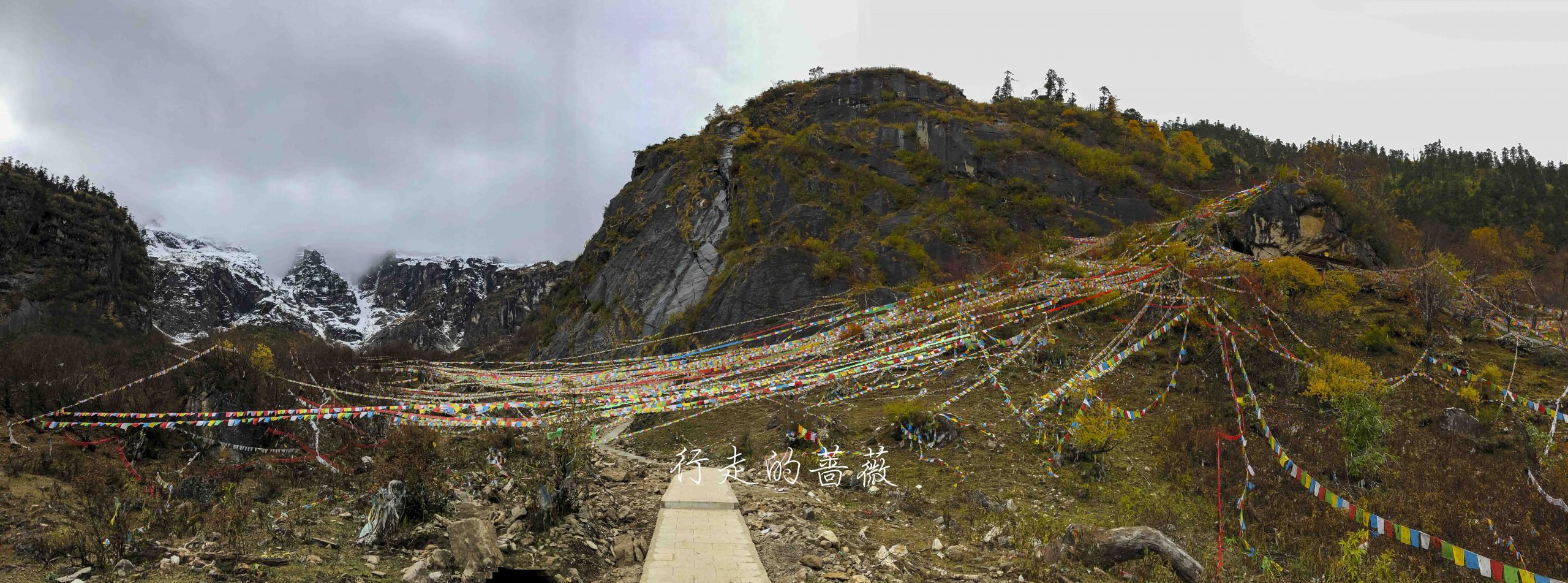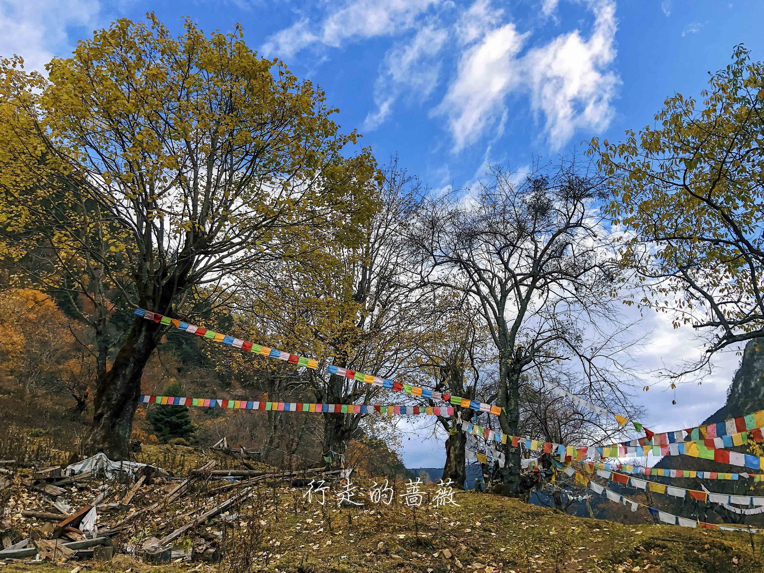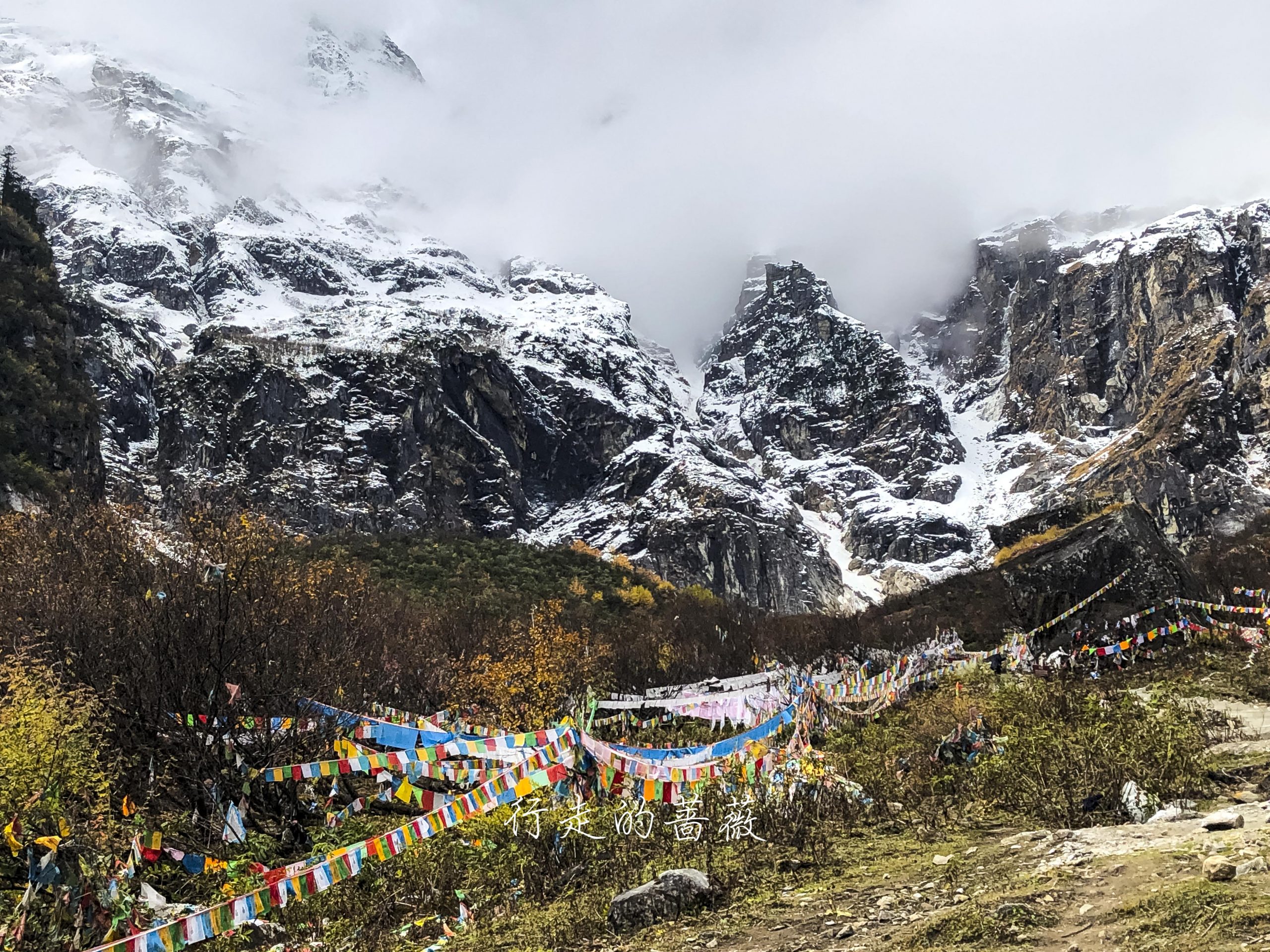 路上非常震撼的是漫山遍野连绵不断的经幡,应该都是藏民来朝圣的时候供奉的。我们沿途也碰到一个藏族家庭,带着年迈的老奶奶一起来神瀑,虽然爬山爬的很辛苦,但是还是坚持到了山顶,信仰的力量是很令人敬佩的。