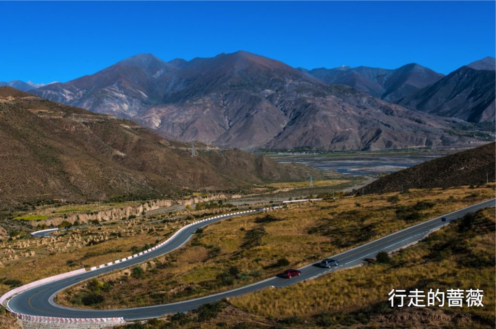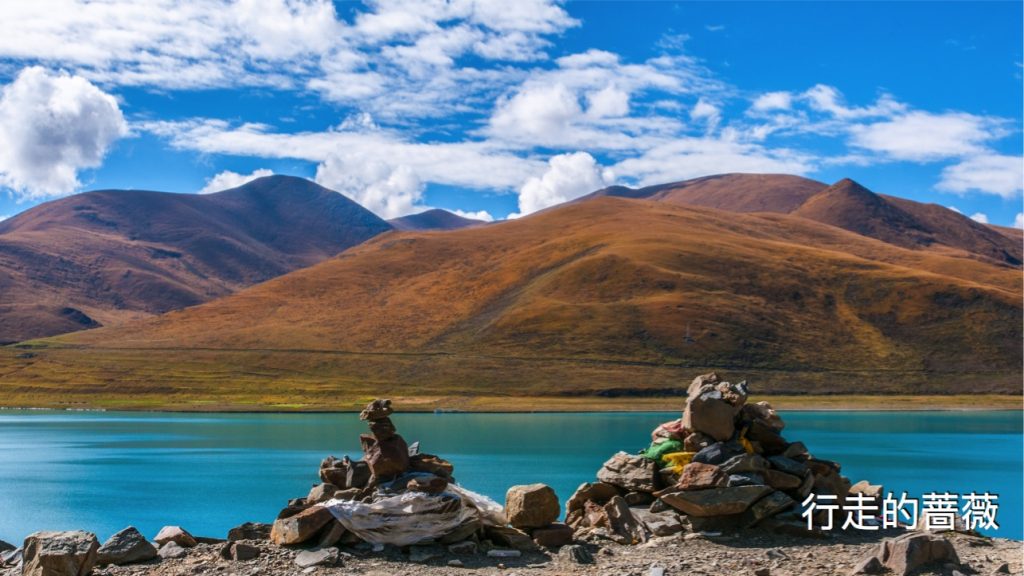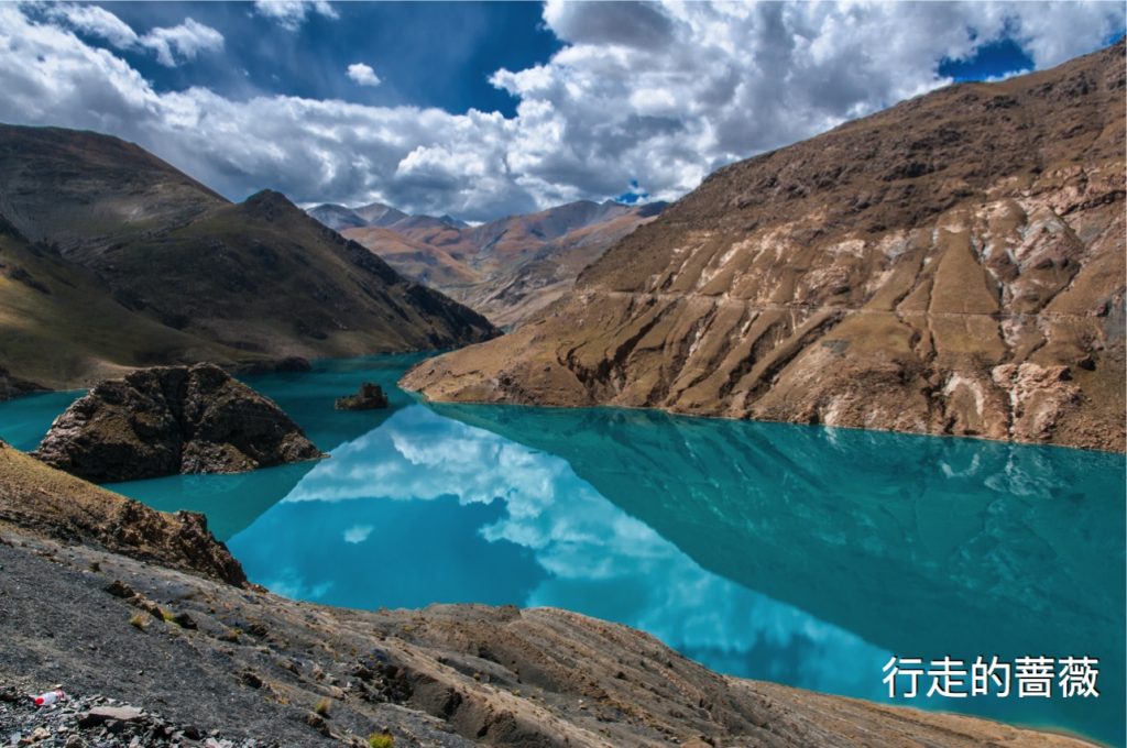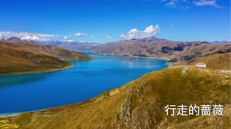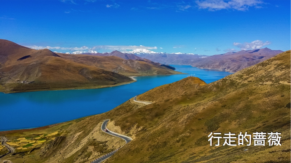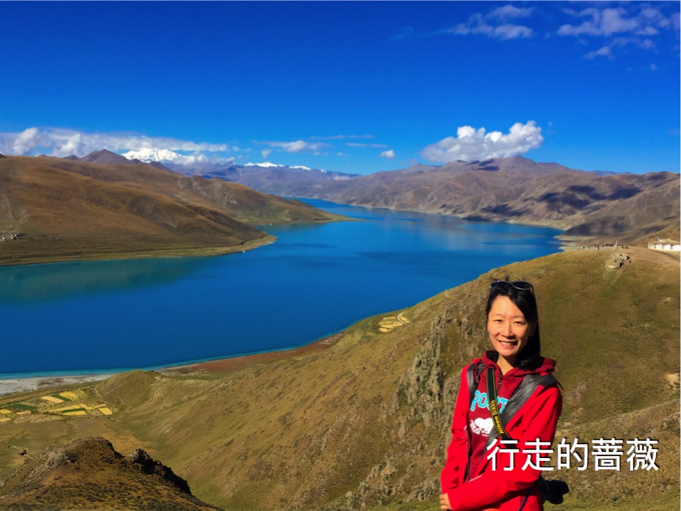 翻越了近五千米的岗巴拉雪山,到达了鼎鼎大名的羊卓雍错–羊湖。作为我们路上看到的第一个措,大家还是很激动的,天蓝蓝水蓝蓝,真的很美。