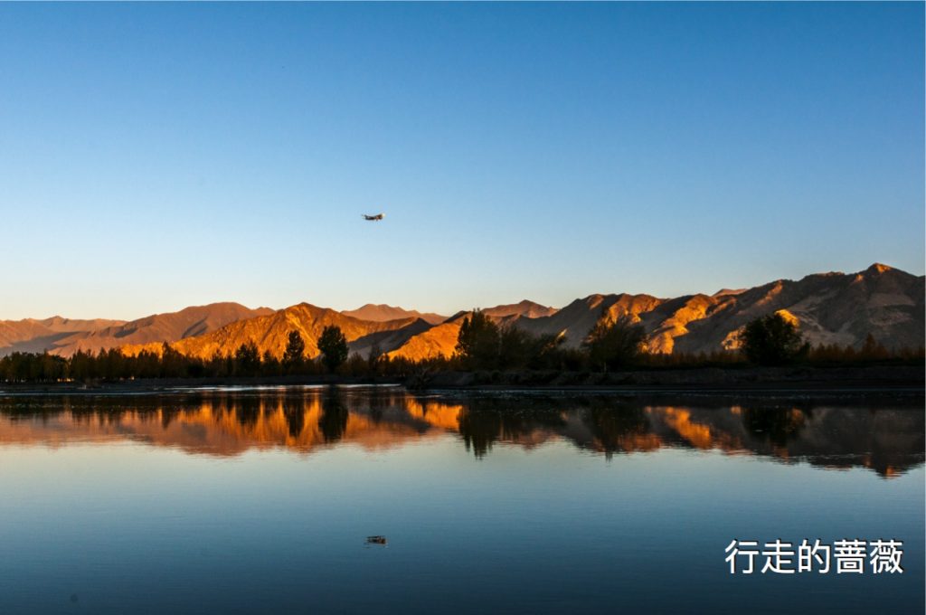 我们在包子店买了几个包子当早饭,出发去雅鲁藏布江江畔迎接日出。天慢慢的亮了,每隔不久就有飞机盘旋飞过。