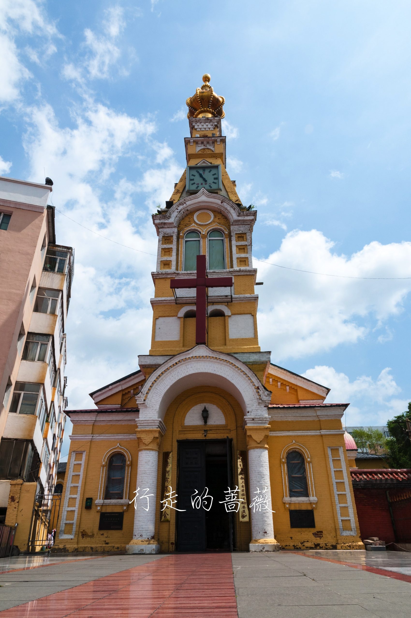 绥芬河东正教堂旧址⬇️绥芬河也是高高低低的山城,这个教堂就要爬爬爬才能上来。教堂造型很奇特,上面有洋葱头,但下面只有一个尖儿,比较像钟楼。