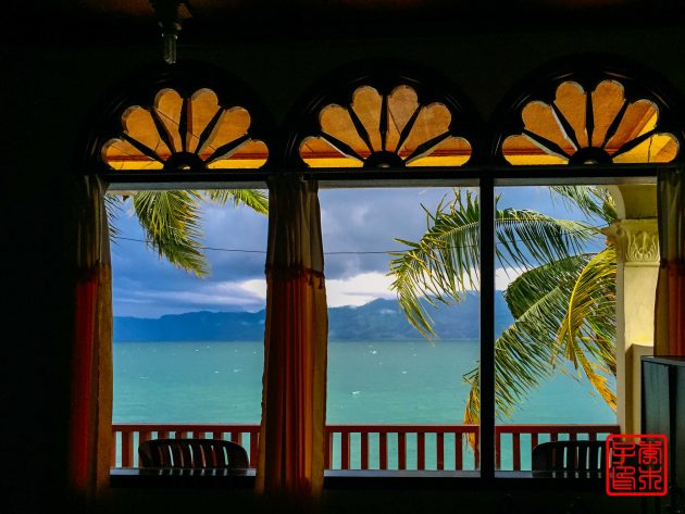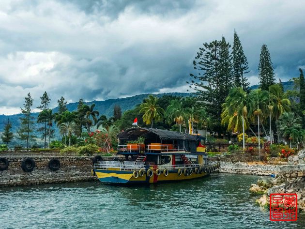 多巴湖是世界上最大的火山湖,我终于来了!天阴阴的风景很一般,在船上看,湖水也不漂亮,船开了风一吹还蛮冷的。到了Samosir岛上就开始沿岸往各个酒店送人,我定的是最远的一间Mas Cottage,到了的时候已经风雨飘摇了。船开始晃得厉害,还好没多久就到了。我听说有人因为风浪太大,就被扔到别的码头,让自己去旅舍,还好我没那么倒霉。