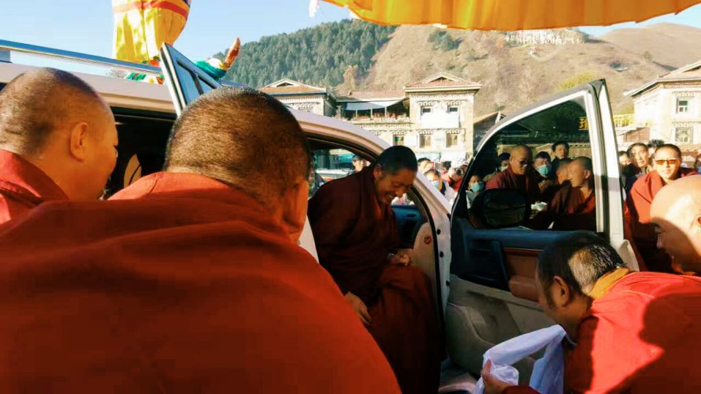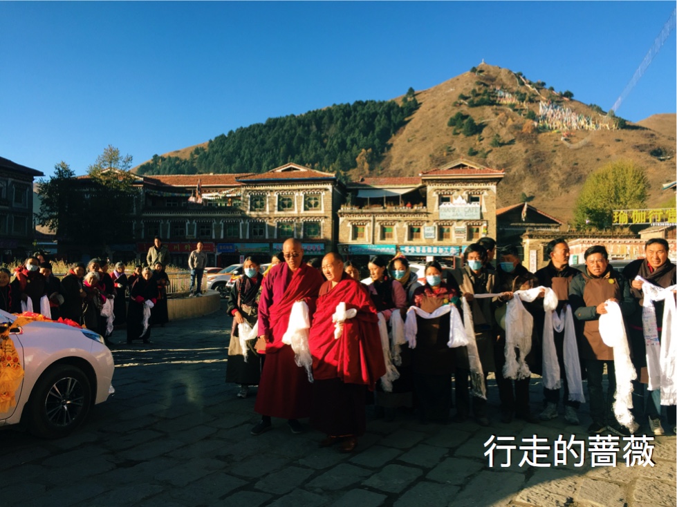 早上看到塔公寺门口已经聚集了挺多人了,都举着哈达等待着大人物的出现。