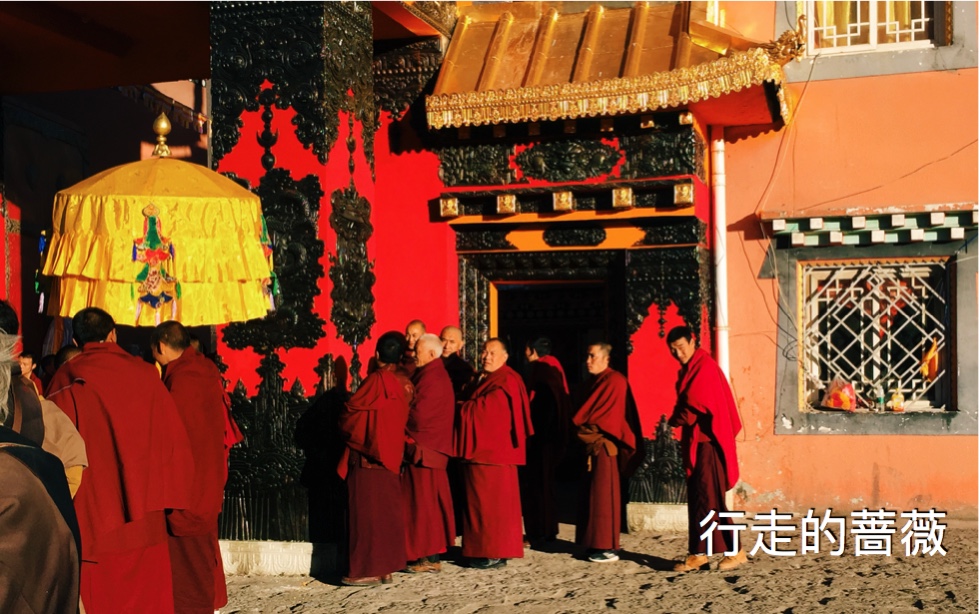 这么多红衣喇嘛一起涌进大殿的景象还是很震撼的。