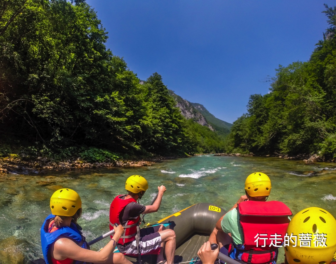 天气这么热,没有比去河里rafting更爽的事情了,塔拉峡谷Tara Canyon是欧洲最深世界第二深的大峡谷,仅次于美国科罗拉多大峡谷。我们来之前都不知道这儿竟然有这么个世界遗产。漂流rafting是提前跟旅社定的,45欧一个人,接送什么都安排好了不用操心。台湾大婶也和我们一起,还有一对俄罗斯小情侣等人。