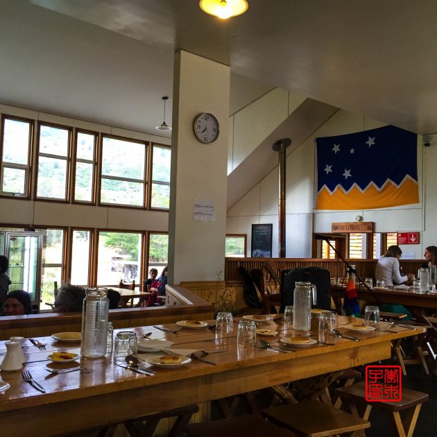 Refugio比想象中好多了,非常干净宽敞明亮,大概是比较新建的缘故。就是来这里的族群看上去年纪都很大了,大概是旅行团的,很多说法语的人。食物还可以,虽不能说好吃,但还是挺齐全的算是很像样的晚餐。而且竟然还有现场演唱,感觉格调很高的样子。大概因为这里还是通车的,所以物资什么都不缺,条件不错。