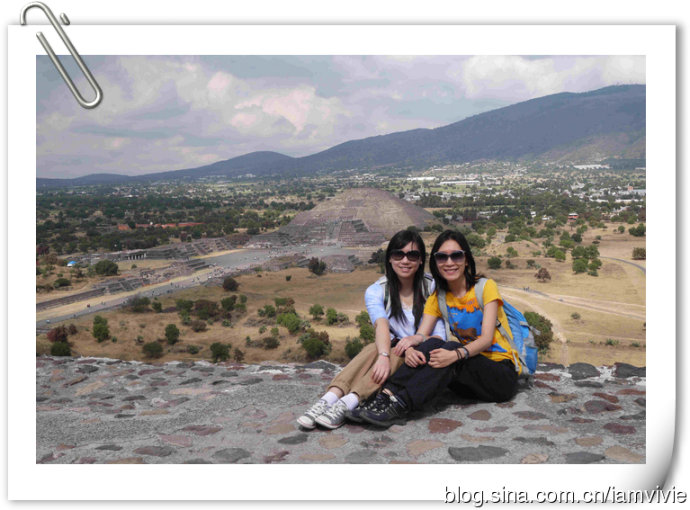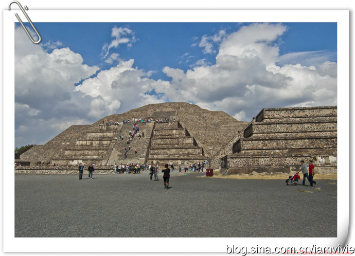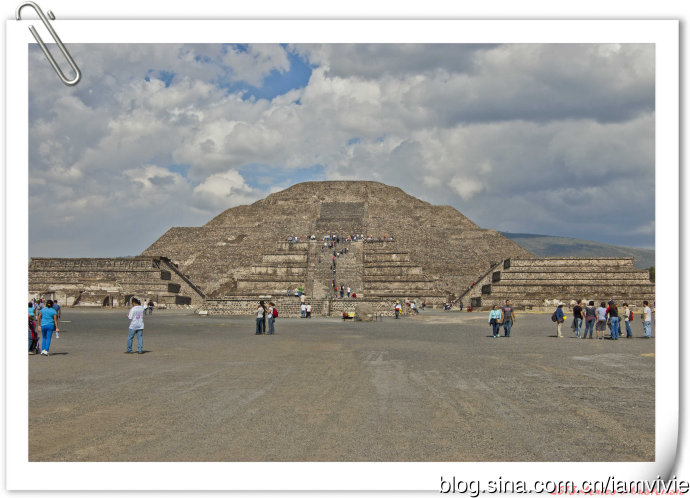 亡灵大道终于算是走到头了!月亮金字塔就很容易攀爬,只能爬到半腰,而且空间满拥挤的,大家都坐在边缘上人挤人,想拍张照片都不容易。