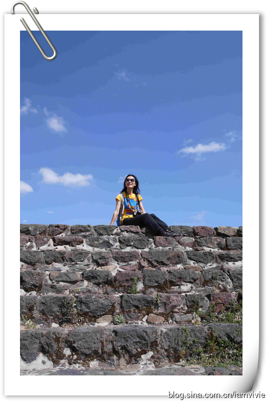 一路上有时候要爬上爬下,广场上一个洞一个洞的。没遮挡的大广场上,大太阳一照终于可以穿短袖了,还好时不时的云彩飘来,不然爬金字塔要晒死。