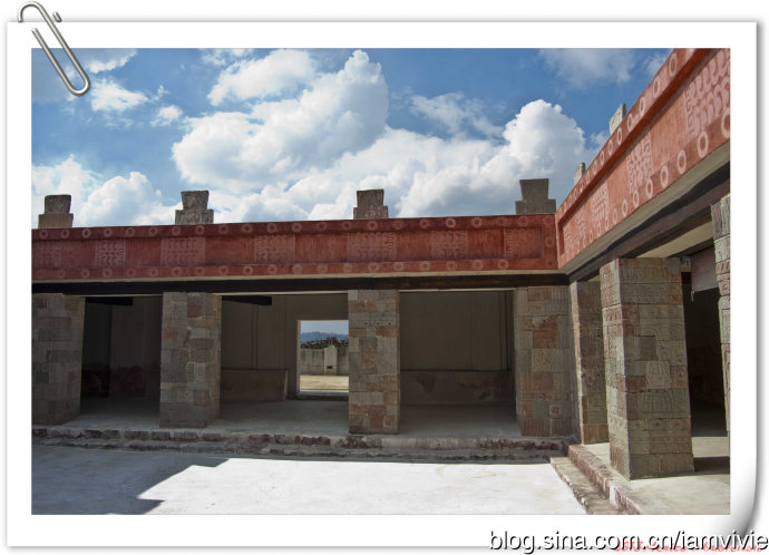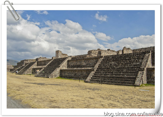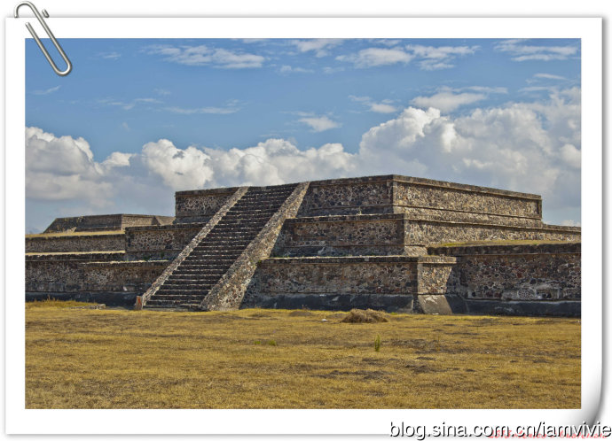 遗址重要的有三个:羽蛇神神庙(Palacio de Quetzalpapálotl),太阳金字塔(Pirámide del Sol),月亮金字塔(Pirámide de la Luna)。一进门门口有张很晦涩的地图,扫了一眼没认真看,心想重要的地点路上也会有牌子标明的吧。远远地看到太阳金字塔,就直奔那里去了,细细还问要不要去一进门的那个不起眼的遗址看看,我想说也没写什么,也许不怎么重要,先去看主要的好了。结果就生生的和羽蛇神神庙错过了!!!正确的顺序是,一进门先参观羽蛇神神庙。