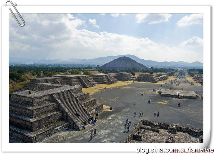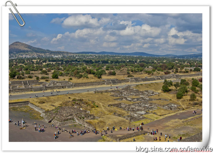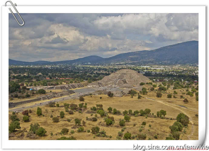 不远处的月亮金字塔,整座城市确实是在山谷中被群山环绕。