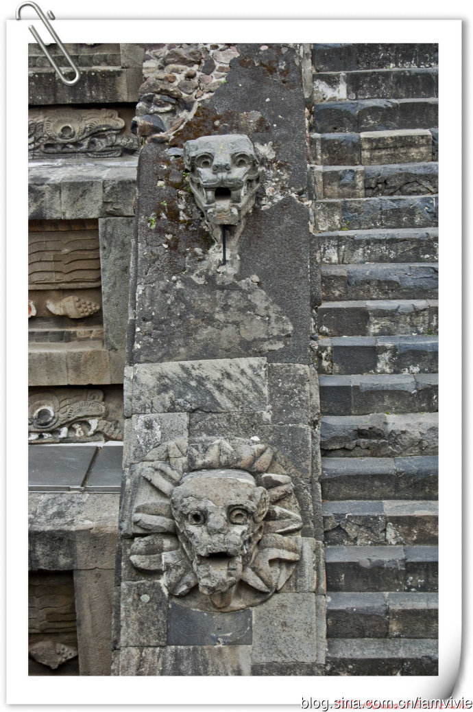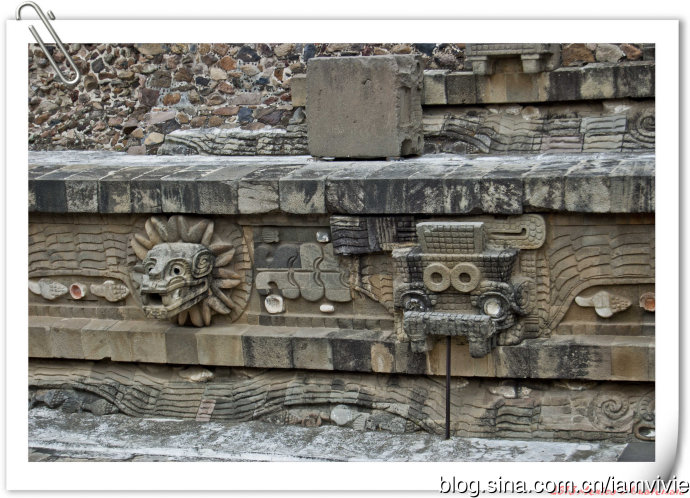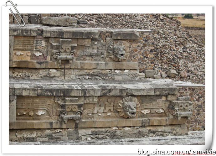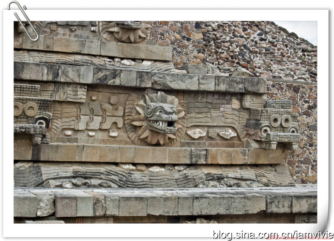 好不容易走回来才参观的到的羽蛇神神庙,一定是要多拍几张照片的!每一只都长得不太一样,没有让我失望:)值了!就是有栏杆围着,没办法靠近。