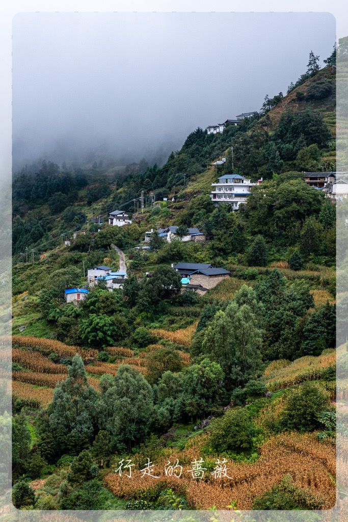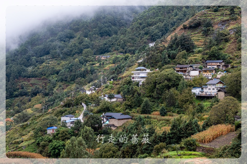 和Lola商量了下,还是准备包车去往下一站等吧。和司机联系好,雨下的没那么大了,我们出来附近溜达溜达。山间弥漫着水汽和云雾,很是心旷神怡。 司机过来接我们,和他表达了我们想去张老师家看一下的愿望,司机说张老师是我堂哥。。。哈哈哈,从中途客栈到张老师家距离不远,但山路还挺难走的,中间有一段还在施工中,路面没有铺好。司机问我们要不要拍照,停车带我们爬了一个很高的土堆上面,好像原来这里没施工之前也是个观景点。这里大概是我觉得全程位置最好的拍照点之一了,可惜下车的时候懒得掏相机。