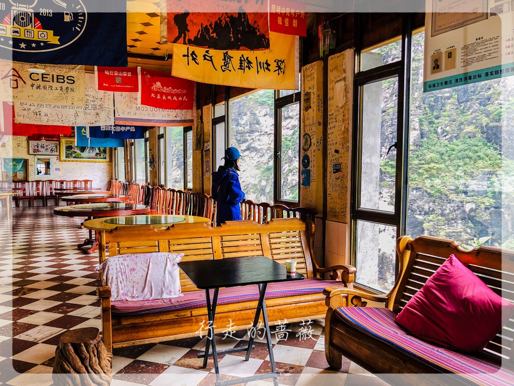 吃早饭的时候,大家都在讨论接下来该怎么走。如果是土路或者落叶路,下雨其实也不碍事,雨衣我们也都带着呢。但是这条路上会有很多石头路段,下雨石头肯定会比较滑,而且是走在悬崖边,我觉得还是不要冒险的好。其他的客人也有坚持要走的,还有打着伞走的,真是劝也劝不住。咨询了一下小老板,要么我们可以继续在这里再住一天,要么可以包车住到Tina’s看看天气怎么样,毕竟我们还有几天时间。Tina’s也是名气很大,但是各方面吃住都很一般,只是因为交通比较方便。附近还有中虎跳入口的张老师家可以住,但我们在网上看来看去,发现各平台都没有开放预订,不知道是不是因为疫情关门了。