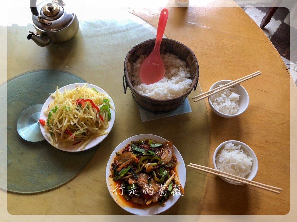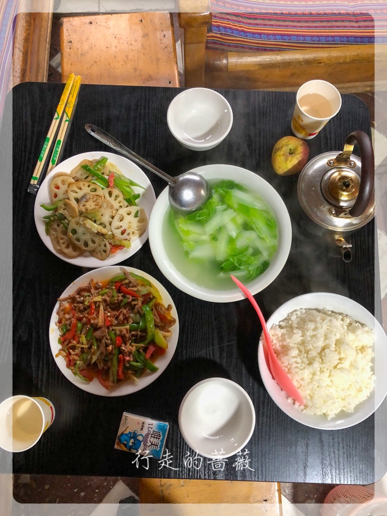 晚饭也很好吃,传说中的张老师终于露面了,他们一大家人也围坐在一起吃饭。张老师白天去工地打工了,大概因为疫情客栈也赚不了多少钱吧。。。感觉除了我们还有一些大车司机或者是工地的人也在这里歇脚,我们吃了饭就回屋窝着了。