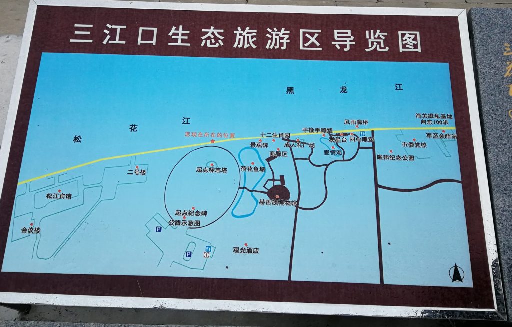 这里修建了起点广场,是中国南北公路大动脉同江到三亚的同三公路的起点。附近是三江口生态旅游区,有一些小的景点,天气不好我们就没去。