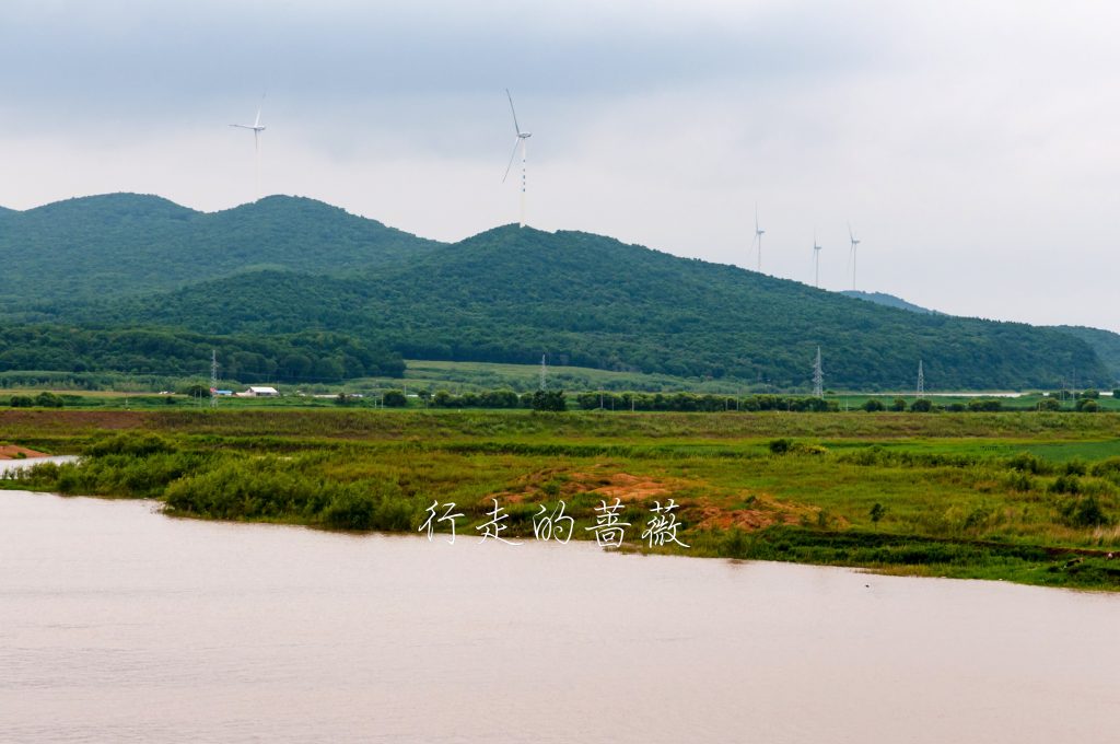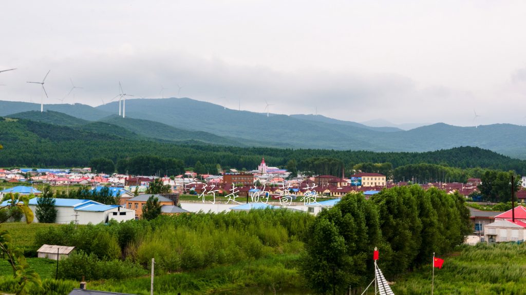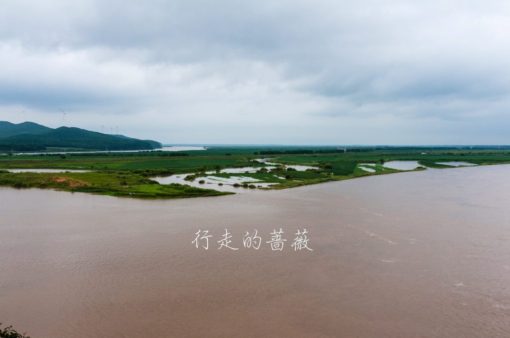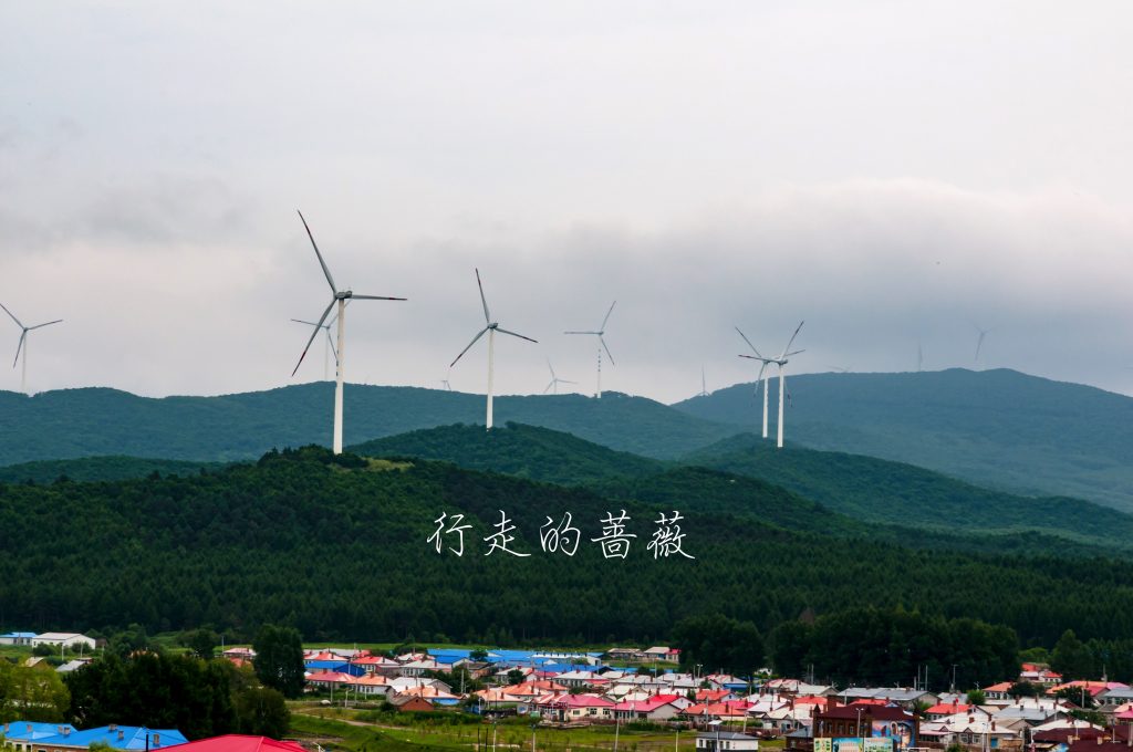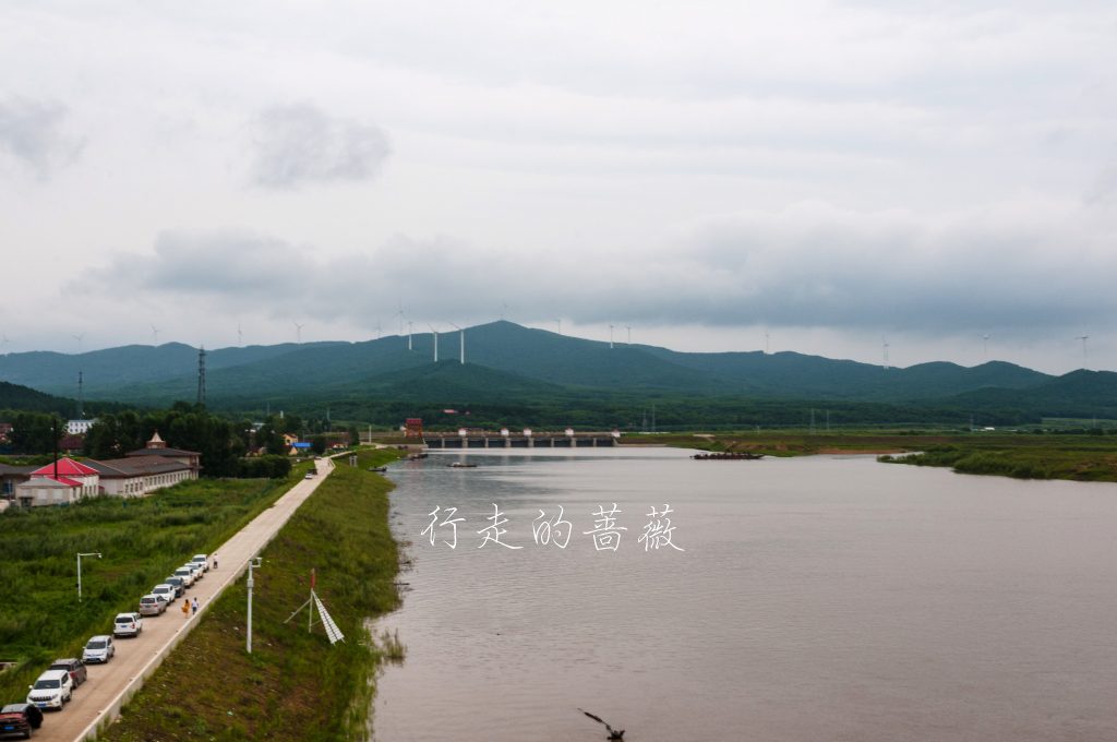 村里的小房子墙上上有些特色的绘画,天气不好也没怎么逛。来到这座森林公园登高望远,这里属于完达山脉,对面的山上竖着不少风车,下面的黑龙江依旧黄涛滚滚。