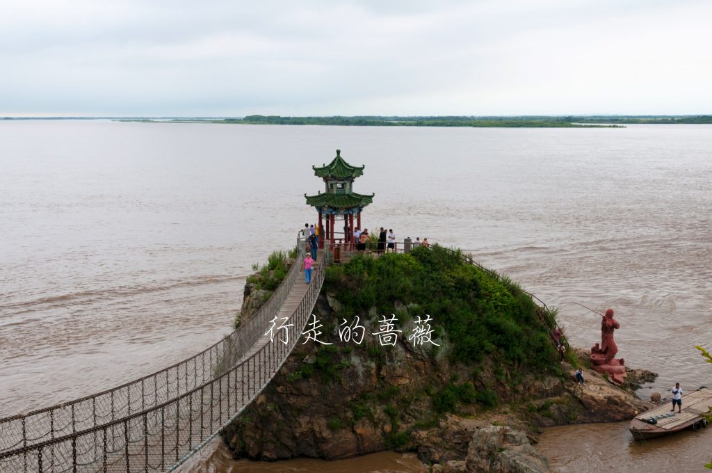 同江同样也属于佳木斯市,这里最著名的就是三江口。松花江在这里注入黑龙江,形成混同江。三江指的就是松花江、黑龙江、混同江,我还以为是三条不同的江呢。天气不好,也看不到什么几条江的分别,似乎好像远处有道分水岭。号称是“江汇于此、路始于此、海通于此”,总觉得和欧亚大陆最西端葡萄牙的罗卡角的称号“陆止于此、海始于斯”,有异曲同工之妙。