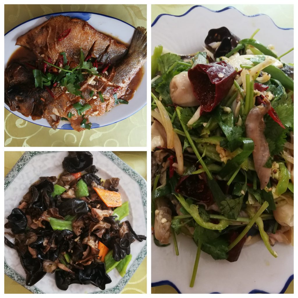 先在村口的餐厅解决午饭问题,这里有特色的凉拌鱼皮,很是惊艳,我以为会味道很腥呢,结果完全没有而且咀嚼起来口感也很好。最近基本上把能吃到的三花五罗都尝试了,还有十八子中的一些,但是还是基本对不上号,不怎么热爱吃鱼的我实在是很努力了。