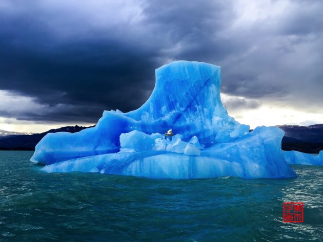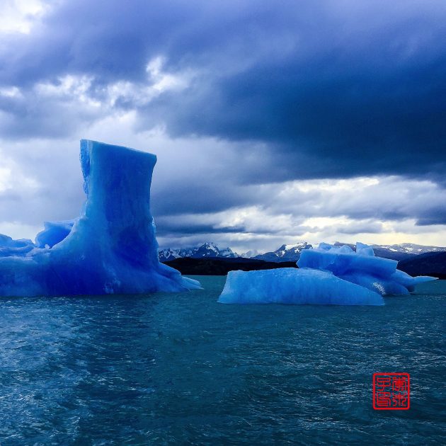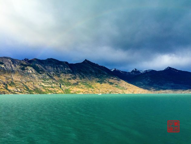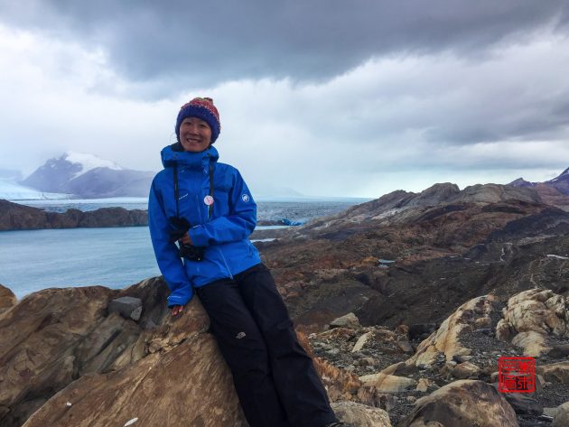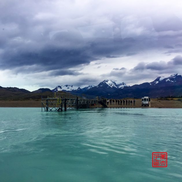 坐船沿途看到的是Upsala冰川飘来的浮冰,虽然每天都在看,可坐船近距离接触浮冰的时候,还是会情不自禁的发出赞叹,太神奇了!今天在甲板乘风破浪的时候,不知为何脑子里一直浮现泰坦尼克号的故事。天气一直都阴森森的,虽然风很大但一点都不冷。