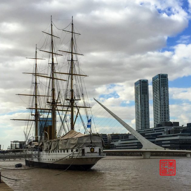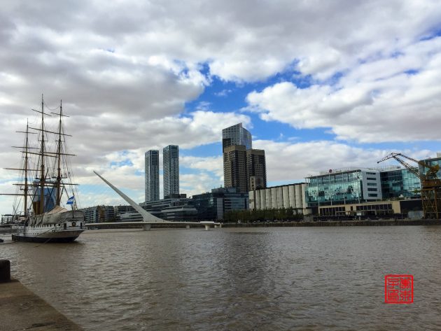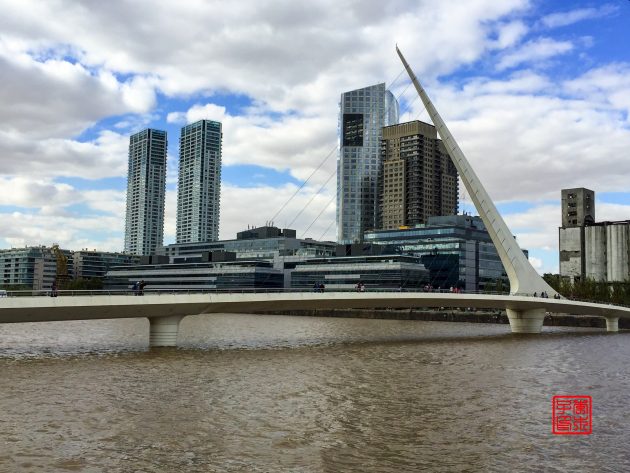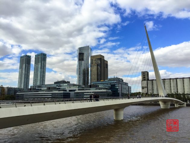 因为就随便歇脚两天中转,选择的是Hostel Estoril,放下行李出来Puerto Madero马德罗港逛逛。这里是老旧港口翻新重建的,所以和其他区域风格不太一样,换个口味体验这座城市。两岸高楼林立,有办公楼、餐馆和住宅,很适合河畔漫步。还有咱们威武的ICBC大楼。造型很有特色的这座白色的Puente de la Mujer女人桥,吸引了不少目光,还可以桥墩为支点旋转90度让船只通过。