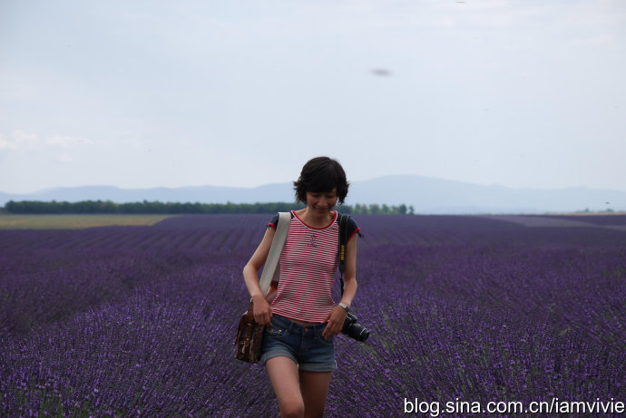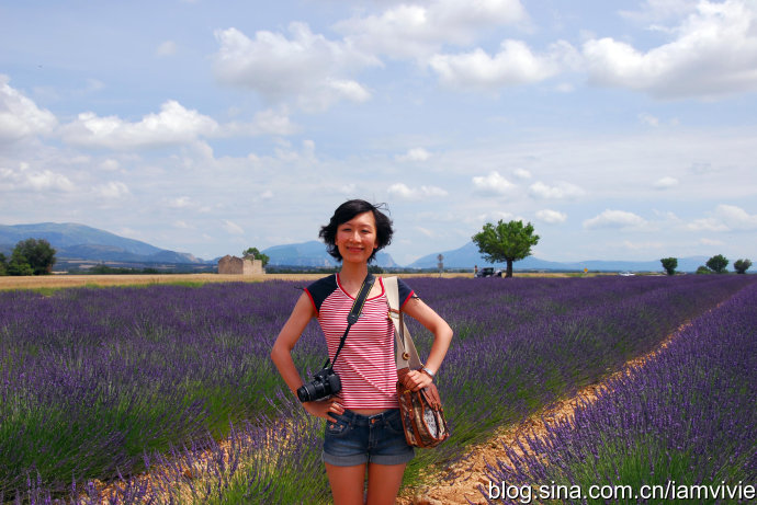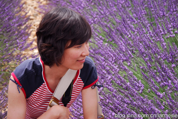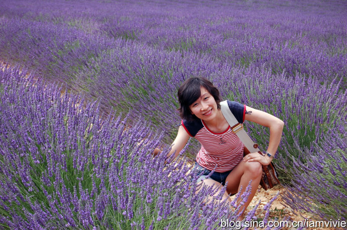 法国主要有两大片可以看薰衣草的地方,一个是Sault但是那边花期比较晚,另一个就是我们去的Valensole。穿越了好些个南部小镇,我们到达这个地区的时候,路的两边都是大片大片的薰衣草田,空气中都弥漫着薰衣草的味道。说句老实话,现实中看到的薰衣草没有照片上看着观,哈哈。我去过魁省的那个薰衣草园,所以已经有心理准备了。想着拍几张美美的照片,不过薰衣草从里好多的蜜蜂,虽然导游说那蜜蜂不蜇人的,可是心里还是怕怕的。个人建议,薰衣草还是一陇一陇的拍出来漂亮,否则就是紫呼呼一片。而且拍薰衣草还是穿着飘飘的裙子比较有意境,我穿的短的不能在短的短裤,貌似和薰衣草不怎么搭呀。看我那件T恤了么,没错,还是我大学时的那一件,当时一穿上,细细说,一看就是很多年前的衣服。。。不过回来发现衣服破了,古董衣服就此被迫退役。