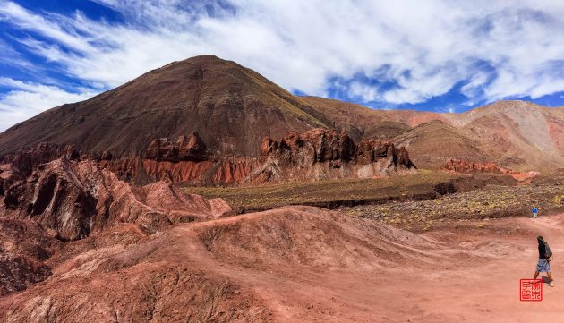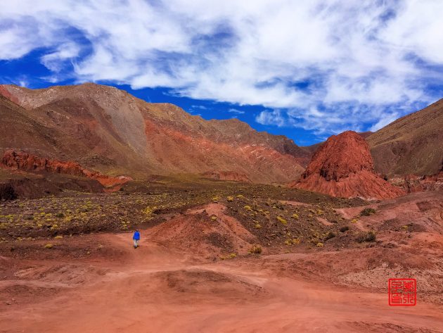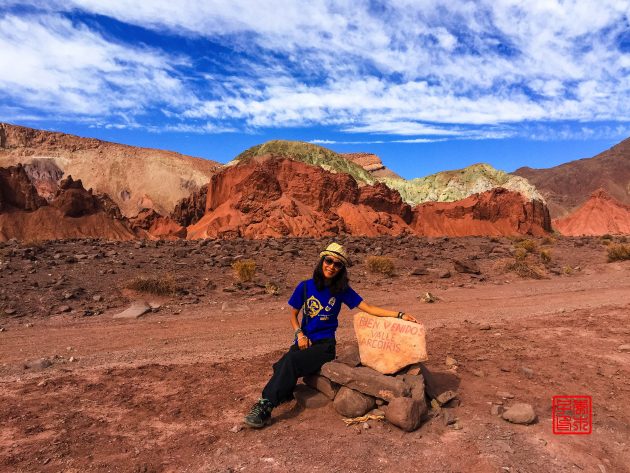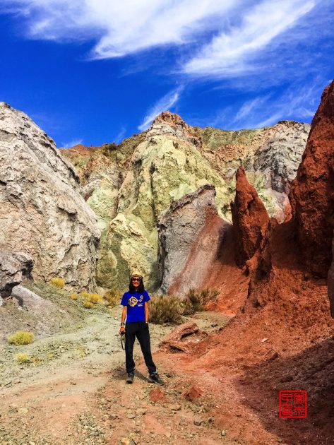 下了高速路,进入山谷后皮卡就发挥作用了,可以开进来里面。这里像彩虹一样的色彩缤纷,有各种矿物质再加上盐结晶的白色、蓝色的天空,确实凑齐了彩虹的颜色,名副其实。下车自由活动的这一片没有别的团,空无一人,拍到爽,很有点大片儿的感觉。没想到竟然是个不算热门的景点,大概大家都去什么盐湖温泉了,我们从玻利维亚过来,对那种景色已经审美疲劳,看彩虹谷倒是正合胃口。