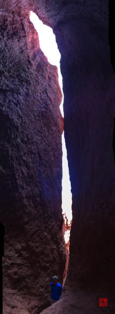 颜色很不错!还好是多云,不然又要被晒死。接着来到一个峡谷里,仰望只有一个小细缝,有点一线天的意思。