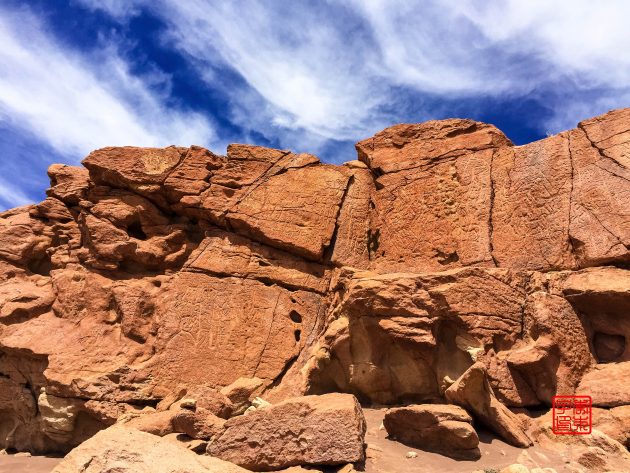 最后一个景点是Yerbas Buenas,有atacameño本地人不同时期的许多的岩石雕刻。图案清晰可见,我们参观了其中比较近的几个site,还坐下来享受了小零食。