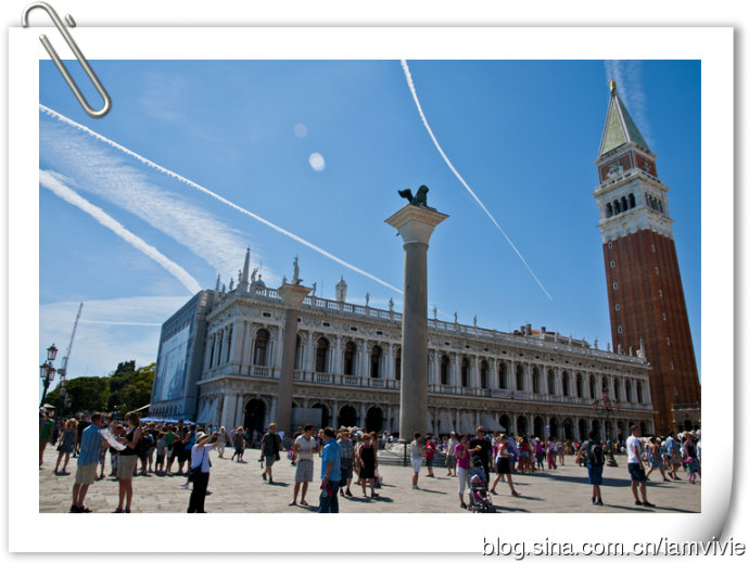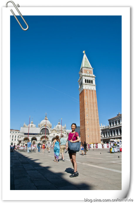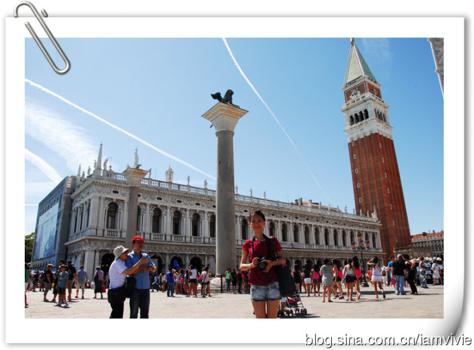 圣马可广场一看就是旅游胜地,到处人头攒动,被拿破仑称赞过的就是不一样啊。广场本身我觉得还好,圣马可教堂挺吸引人的。教堂排的队伍还挺长的,我和细细就快排到门口的时候,看见大家都开始披衣服了,我就把裙子拿出来套在短裤外面,细细也把她的长裙拿出来披在肩膀上,后面两个老头老太看我们滑稽的样子笑的不行。这时候更匪夷所思的事情发生了,我们跟着前面的人走着走着进了教堂没两秒就被绕出来了!等我们意识到已经在教堂外面了。。。白费劲了一番,结果还没看到什么呢,就出来了哎,看来我们人品还有待加强。出来看了看门口的队伍,实在是没信心再重新排一边了,索性外面拍拍照就走了,嘿嘿。