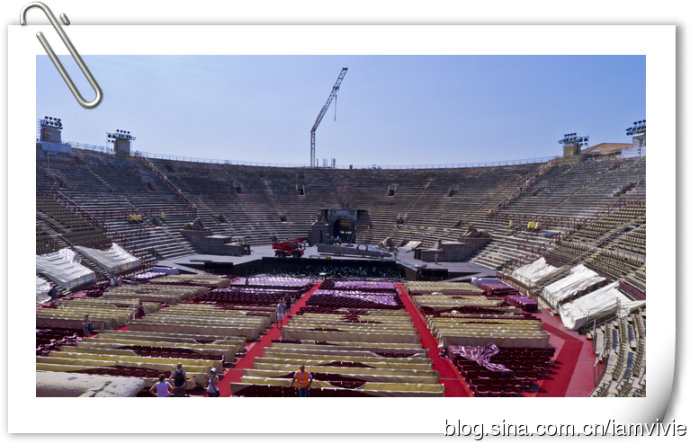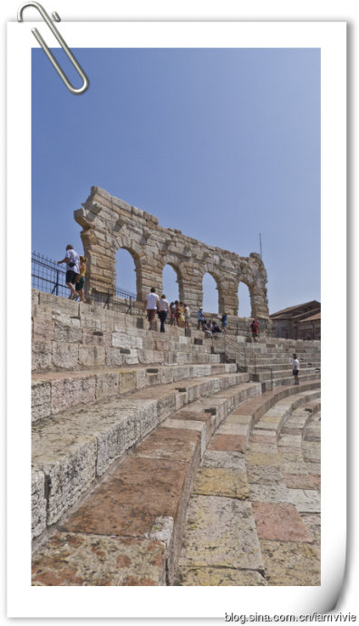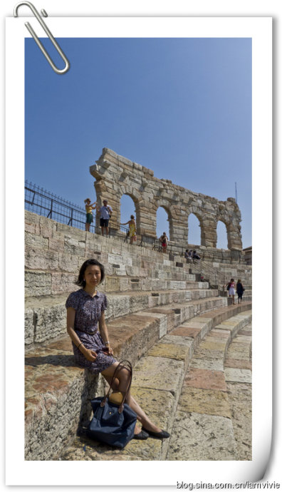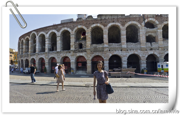 威尼斯的最后一天,目的地是维罗纳。这地方是我看到电影Letters to Juliet才知道的,莎翁的罗密欧与朱丽叶的背景就是这座城市。后来听说有世界第三的斗兽场,不想错过就来了。到维罗纳的火车也是很多班次,有慢车也有快车,网上都有时间表。火车站是Verona Porta Nuova,出了火车站,斗兽场有一段距离,走走也就到了。斗兽场夏天都是有表演的,现在进行的好像是个和埃及有关的,场地内外都有好多相关的展示,所以斗兽场非常的凌乱。。。进去斗兽场,发现也不是很大的样子,甚至都要怀疑是不是比法国尼姆的大呢。斗兽场看多了,也有点审美疲劳了,加上这个又因为晚间表演搭了台子什么的,就更是没有感觉了,呵呵。