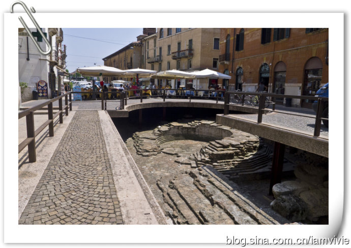 还有一个朱丽叶的墓地,看看艳阳高照的天空,查了一下不是很近的样子,就放弃了。非常好奇那墓地里到底放了些啥呢。中午又到了,路边餐馆解决午餐,旁边好像有一个地下的遗迹还是什么的,像地道似的。