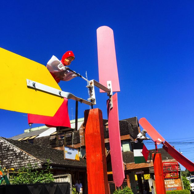 Pucon是本地还有外国游客中非常受欢迎的旅行目的地,应该算是智利版的巴里洛切吧,周边可以开展很多户外活动。小镇不大,但看着很繁华,有一条商业街,两旁都是店铺。云彩散去,走在街上抬头就能清晰地看到正在冒烟的Villarrica火山,欸。看到有狼爪的专卖店,为了弥补受伤的心只能靠shopping了,又买了条徒步的裤子,虽然也不是很合适,最小码还是很大,凑合着穿吧。