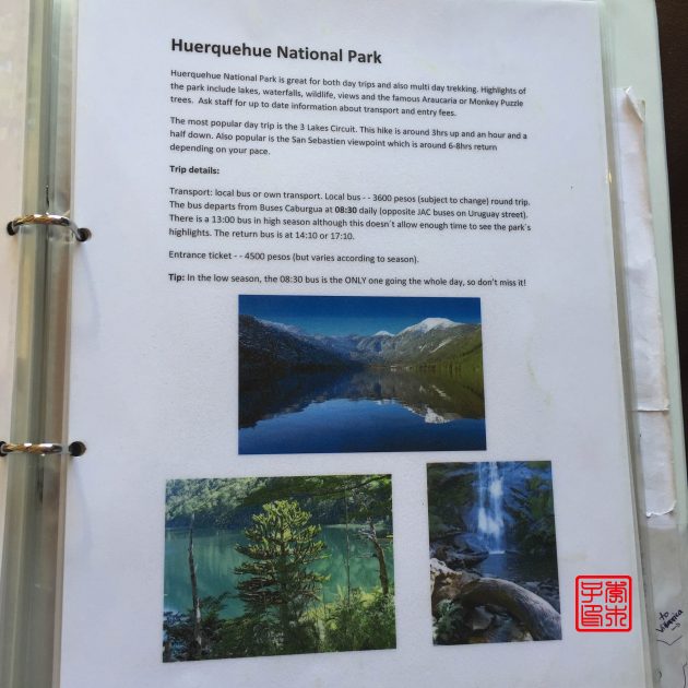 旅馆很贴心的把各个景点如何到达,路线怎样都列出来供大家参考,很简单实用的信息,点赞!景点太多,我现在已经懒得去做功课了,发现了一种发现新目的地的好方法,就是去纪念品商店看明信片,看到喜欢的景色再看后面的名称,回来查怎么去。不然旅游书上信息那么多,干巴巴的,好难选择。以前大家就抱怨LP信息太多,我这次来南美带的宝典是比LP还要更全面的,读着能干到被噎着的那种感觉。所以懒人自有懒方法,看图多方便,嘿嘿。