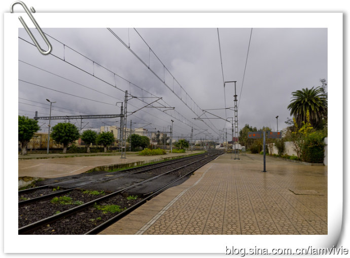 圣城逛完了,拿了预计的40迪拉姆酬谢了默罕默德一天的陪伴,默罕默德说再给多点吧,我很为难的朝他哭穷,他也没难为我,事实上我真的很穷啊!又花了10迪拉姆拼车回到梅克内斯。我从出租车站沿着上午来的路自己摸回到火车站了,这时候走了一天感觉到有点累了,撑到火车站,买了车票进了站台一看,好嘛,火车晚点,大概晚了半个小时。还好摩洛哥火车站都有无线网络,上网打发一下时间。火车上旁边坐的男孩子放Adele的Someone like you给我听,看着窗外的落日,想着自己是在摩洛哥的火车上听这首歌,不禁又觉得很神奇。这个小男孩英文还可以,我们讨论了一下欧美流行音乐,知道我加拿大来的,又给我放了一首艾薇儿的。