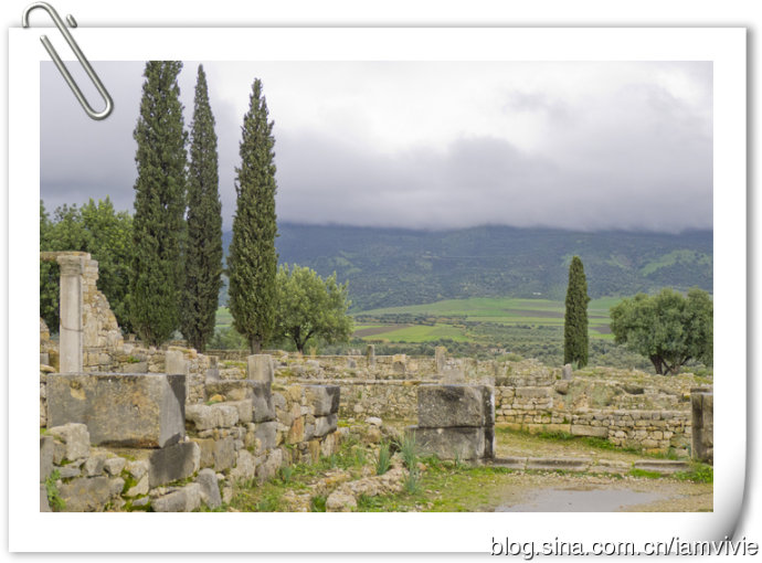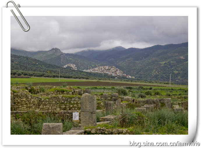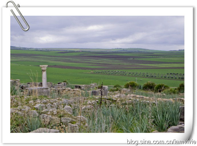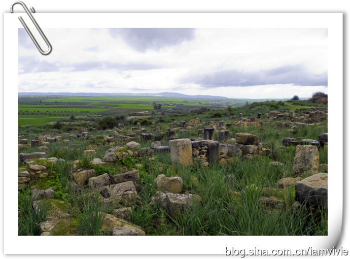 来之前我一直以为这个罗马遗址很小呢,大概几块石头几根柱子就差不多了。Lin那天包车去回来告诉我,那里很大,最好能请个导游带着转什么的。我和默罕默德到了一看,果然是大啊,罗马帝国真腐败!这个景点是在群山环绕之中,旁边是农田,环境非常的赞。虽然那天阴天下雨,但是眺望远方的群山,看看云海,呼吸一下山谷中新鲜的空气,真是觉得惬意的不行。先上照片,天阴沉沉的,颜色不是很好看。