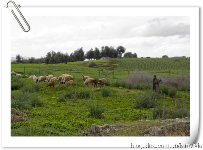 到了圣城,又是一个出租车聚集点。LP上写说,这里可以包车去圣城40迪拉姆,问了一下都开价100,当然没那个钱。站在旁边想看看有没有别人也去就可以拼车了,一个本地人默罕默德过来问我去哪里,我说去Volubilis,他们开价太贵了。我心想圣城到Volubilis也就三公里多,实在在不行就走过去,虽然已经可以远远的看见了,就是不知道好不好找。那个人说要不我带你去,你结束的时候想给我多少就给多少好了。我觉得以当地的收入水平,我就把当初计划的包车费40迪拉姆给他做导游费好了,他要不接受我也没得多的钱给他。本来他想让我做当地的长途车去的,但那车要凑齐人才开车,我说我没那个时间等,我们走过去好了。他也对走路没意见,我们就沿着公路走。后来路上也有petit taxi,到Volubilis一个人才5迪拉姆。所以其实可以在路上等这种出租车的,不用在出租车站问grand taxi,那种是人多才能合适的。我既然答应了默罕默德,不好说半路把他甩了,所以还是由他带我去。默罕默德是个挺不错的导游,除了就是必须和他说法语。。。他不怎么会英语,我和他讲,他要是会英语的话,这生意会好很多哦。