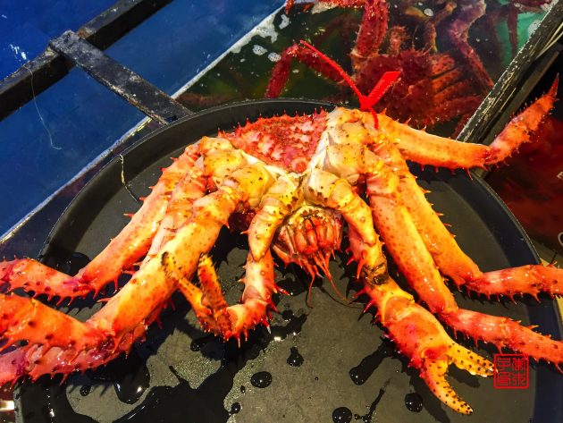 之前在旅社有碰到一个台湾姑娘Karen,因为在客厅听到她讲中文,就勾搭上了。整个南美之旅,就几乎没碰到过中国人,上一次还是在El Calafate还是Chalten的汽车站,碰到一群要离开的中国人,匆匆聊过两句。感觉群里面在南美的并不少,就是都遇不到。难道我是吸引台湾妹子的体质?Karen曾在加拿大阿尔伯塔打工度假,打工结束就来南美玩一玩回去台湾。说起乌斯怀亚的特产帝王蟹,两人一拍即合,对于吃这个话题,中餐文化熏陶的人都是非常的观点一致的。我是没做什么功课,Karen说只有两家餐馆有卖整只活的帝王蟹现场做了吃的,这家Villagio在街上的店面,就能看到里面玻璃缸的帝王蟹。圣马丁街是乌斯怀亚最繁华的一条街。我们就近选了这一家。现场给我们捞了一只,真的是超级大,这只大概两公斤,吃的好辛苦,还好有Karen一起分担。我俩这只蟹从出水到进肚子,全程时不时的被其他吃客围观。老外大概觉得中国人真是猛,这么原始的徒手吃整整一只大螃蟹。对于一个美食爱好者,一个人出游在吃上就会比较受限制。虽然国外大多都是一人份,总比国内方便得多。但是有时候一个人在还不错的餐厅吃饭,总觉得尴尬的不是我而是服务员。。。
