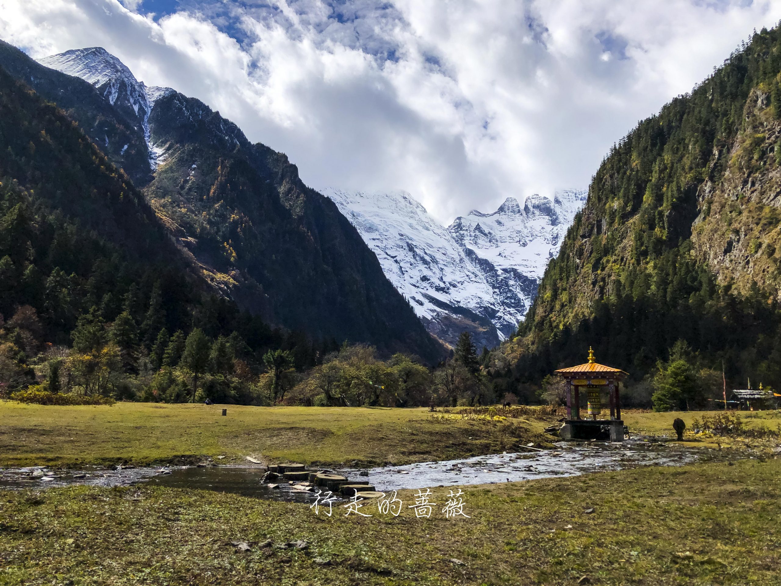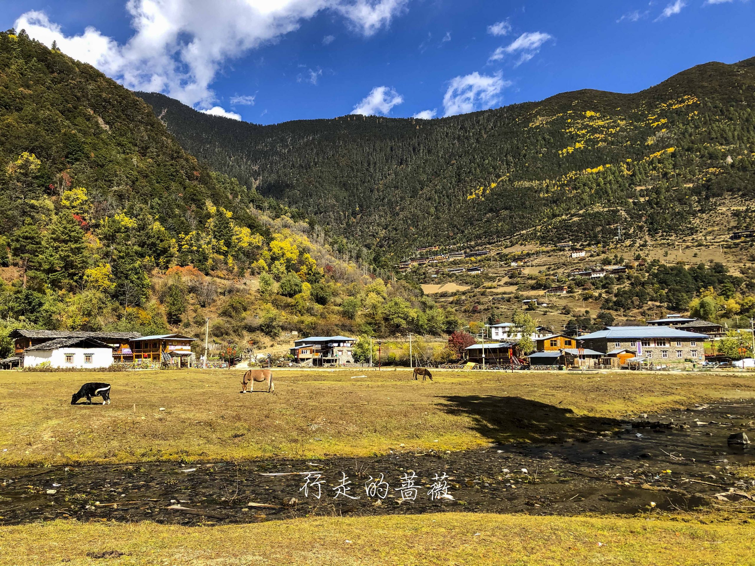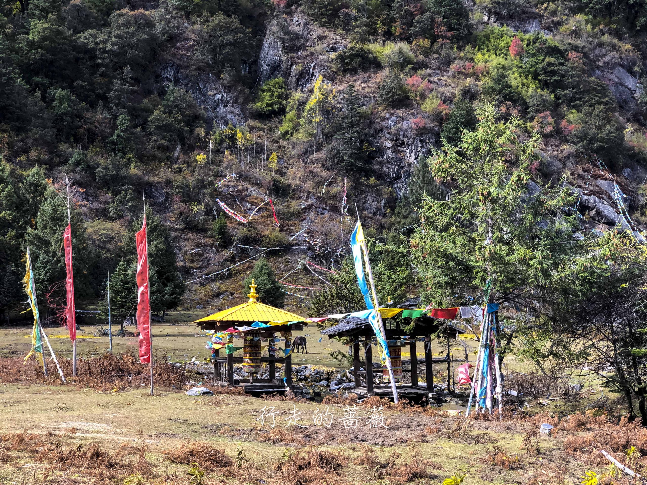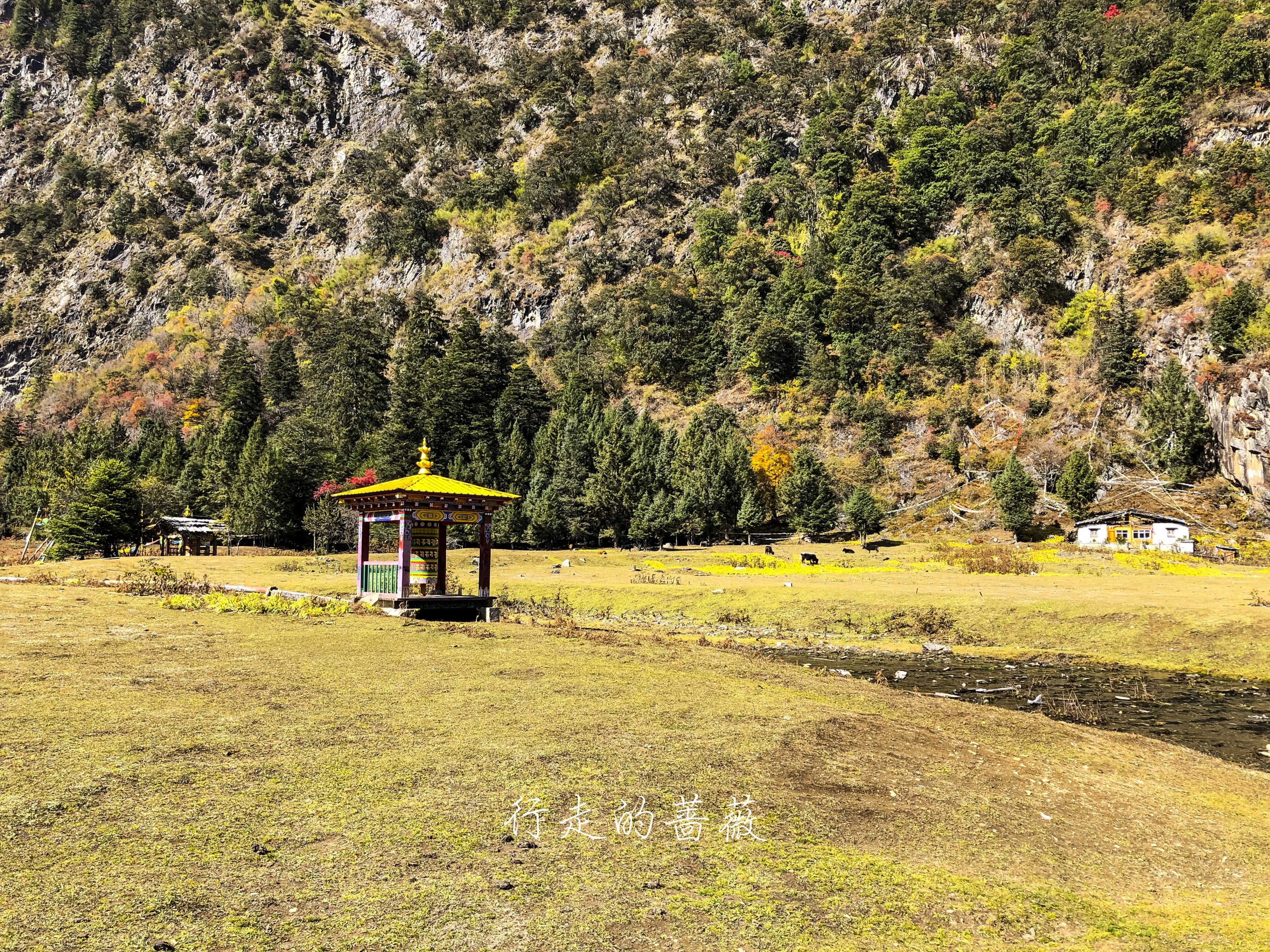 村儿里不是正在铺水泥路嘛,已经快铺到这里了,藏族老板过来给房子加固,钻头一开的声音就从世外桃源秒回现实生活哈哈,小陈对这儿貌似兴趣缺失,我们就向下雨崩出发。