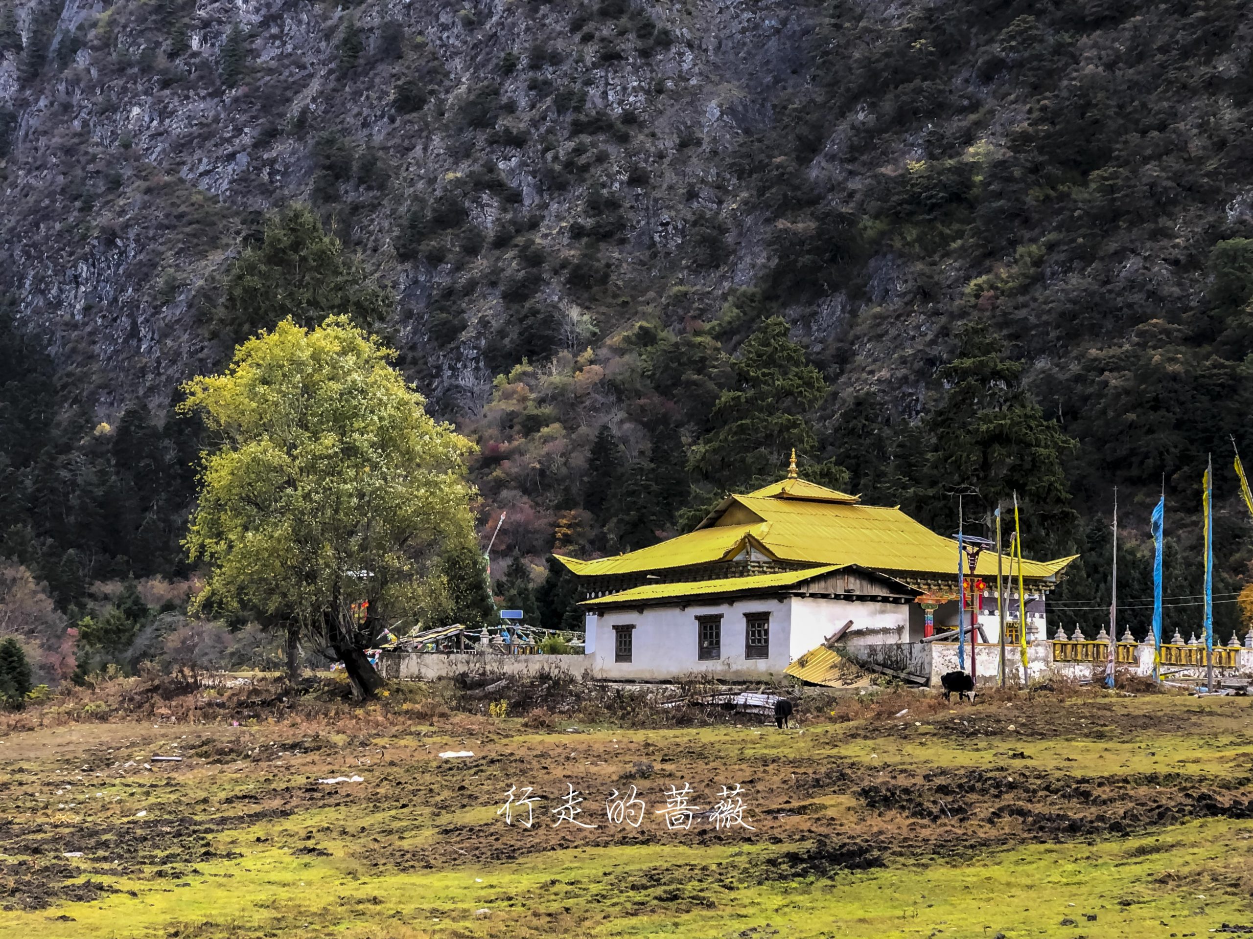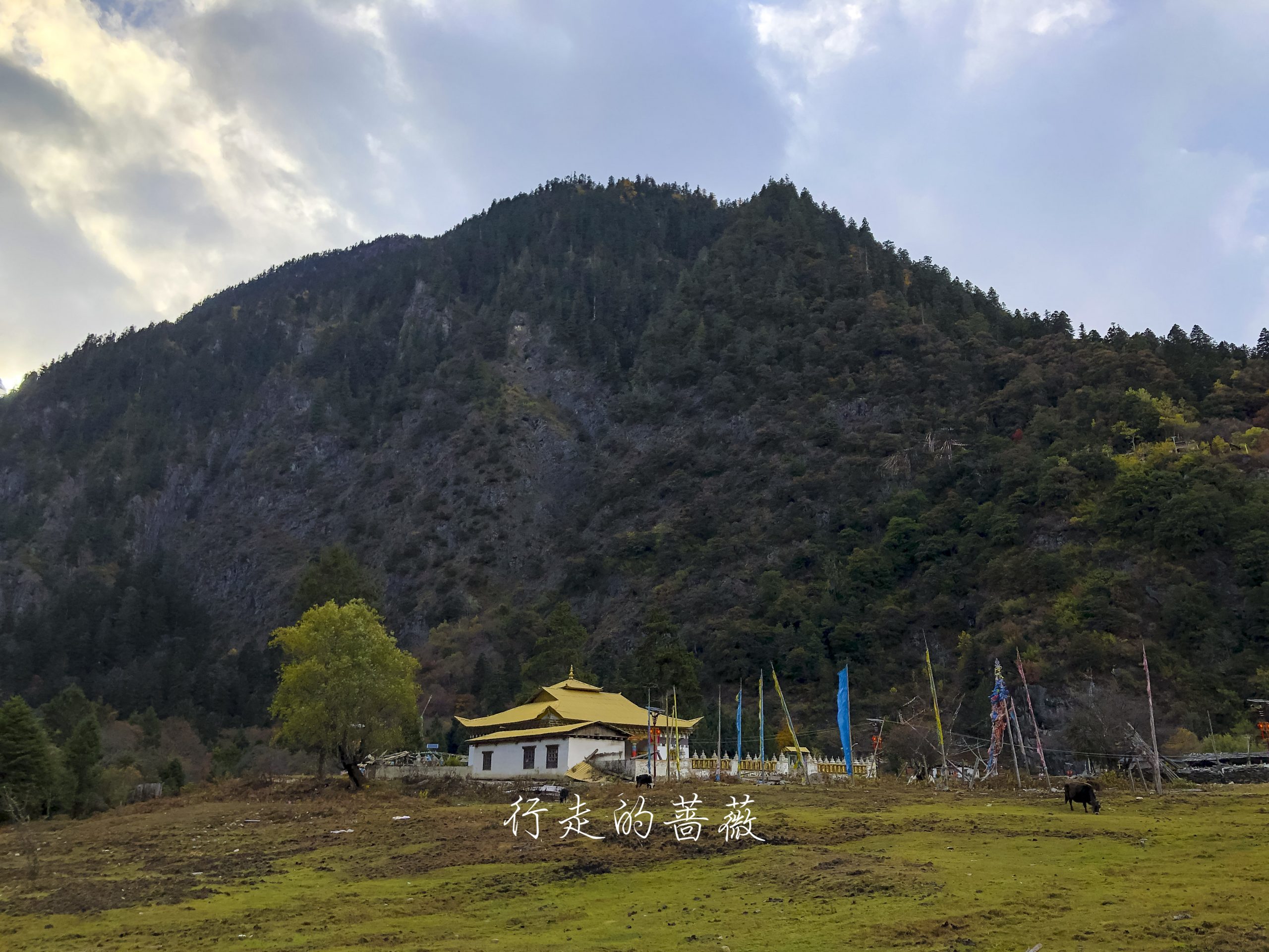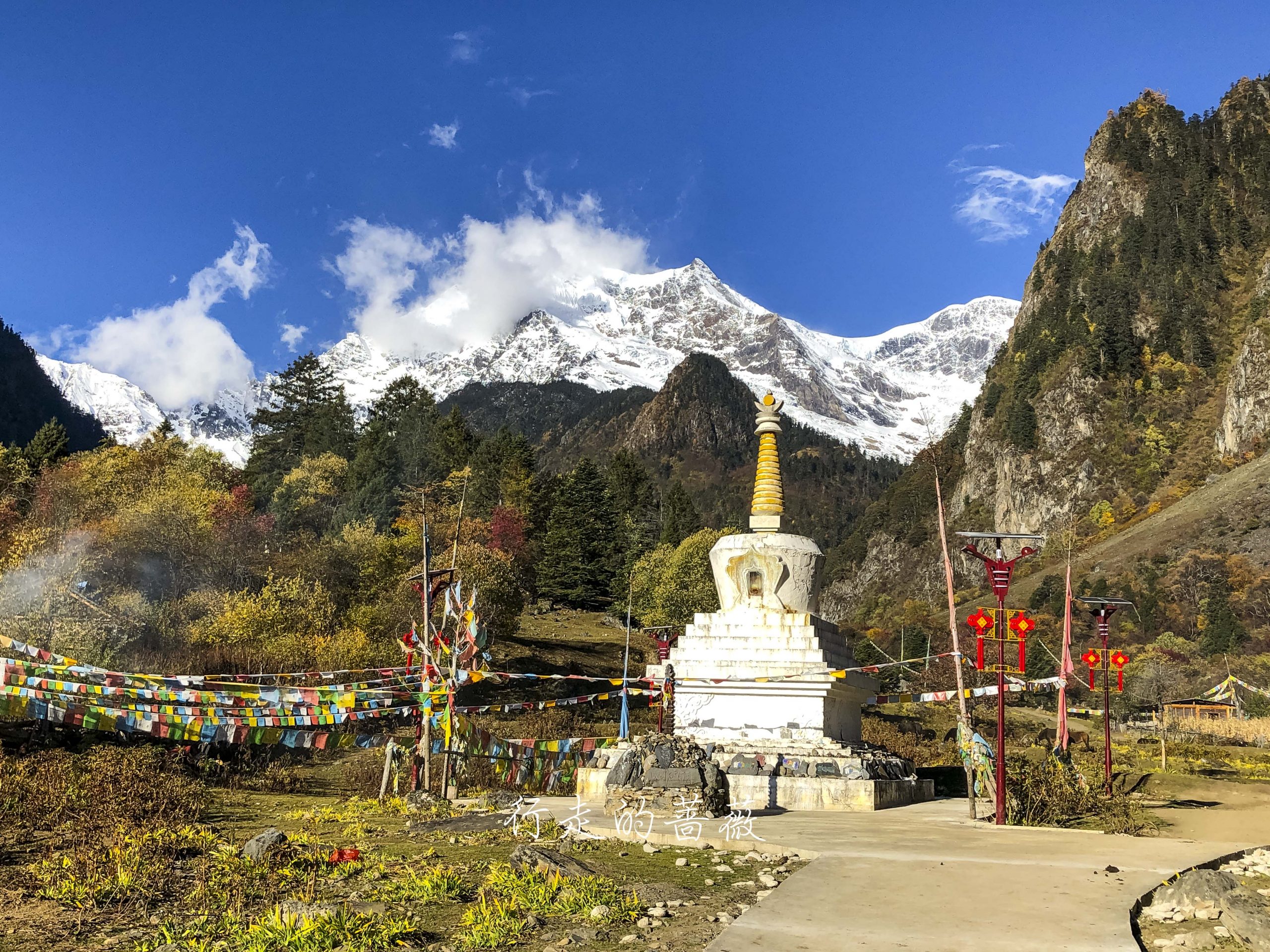 村儿里不是正在铺水泥路嘛,已经快铺到这里了,藏族老板过来给房子加固,钻头一开的声音就从世外桃源秒回现实生活哈哈,小陈对这儿貌似兴趣缺失,我们就向下雨崩出发。