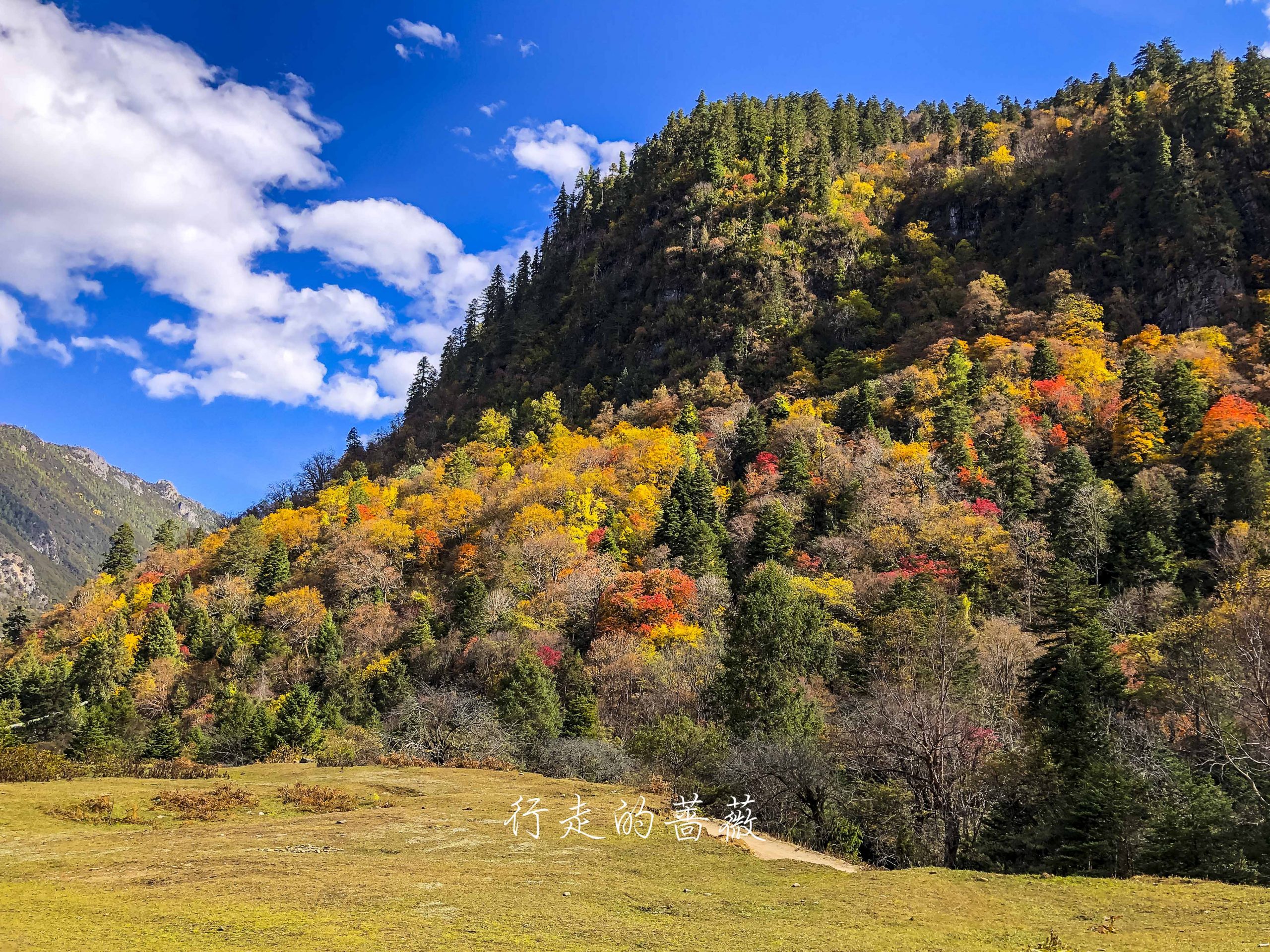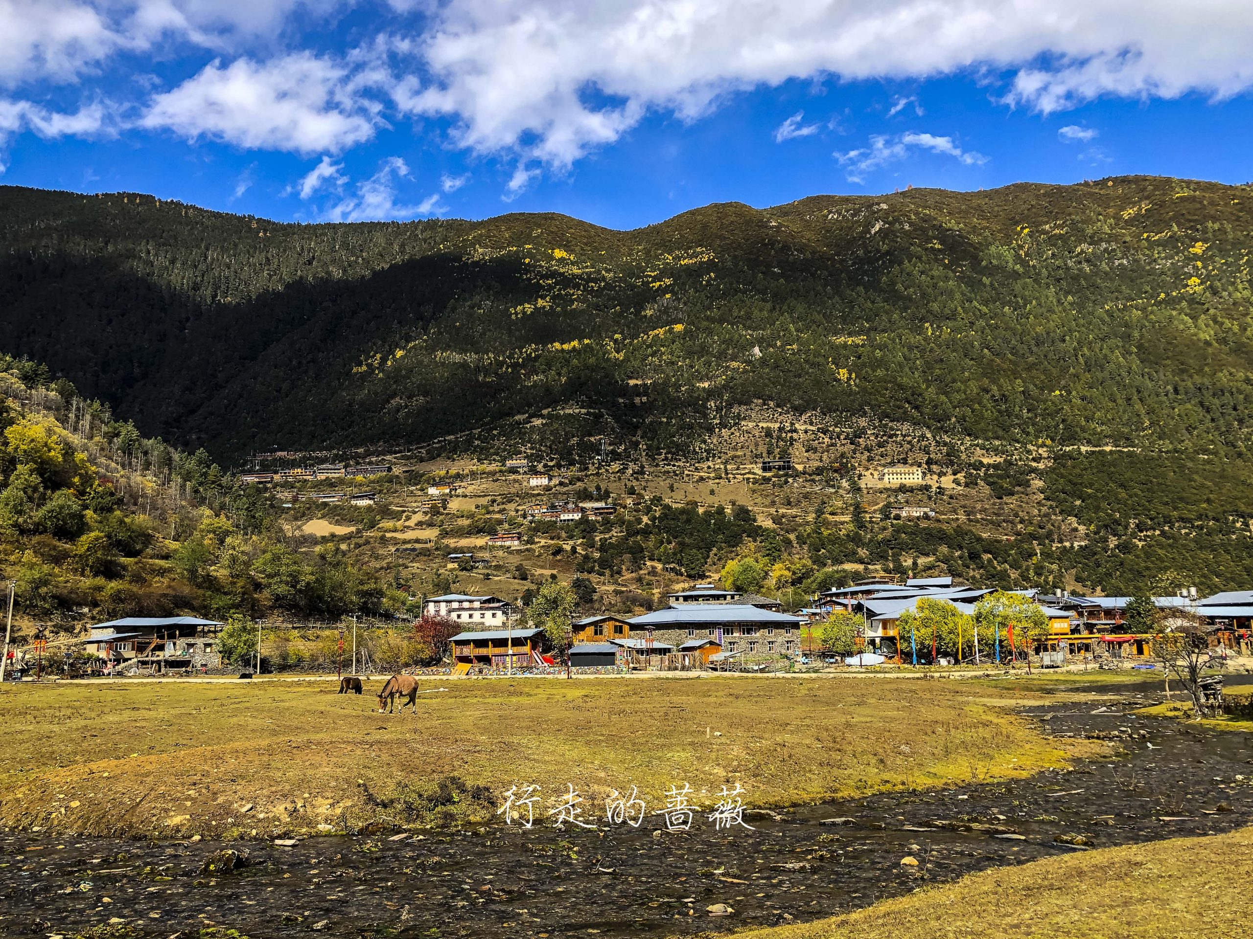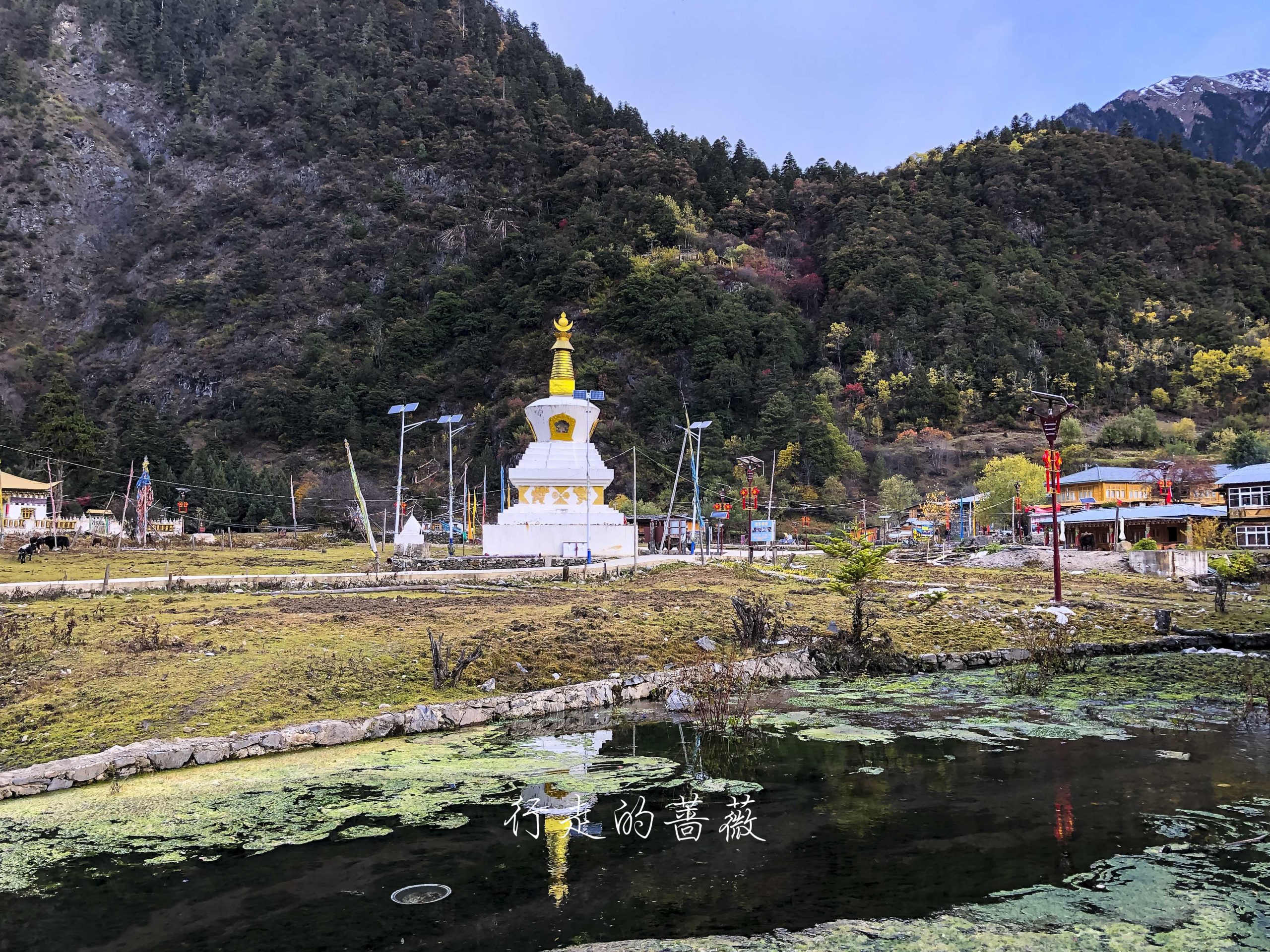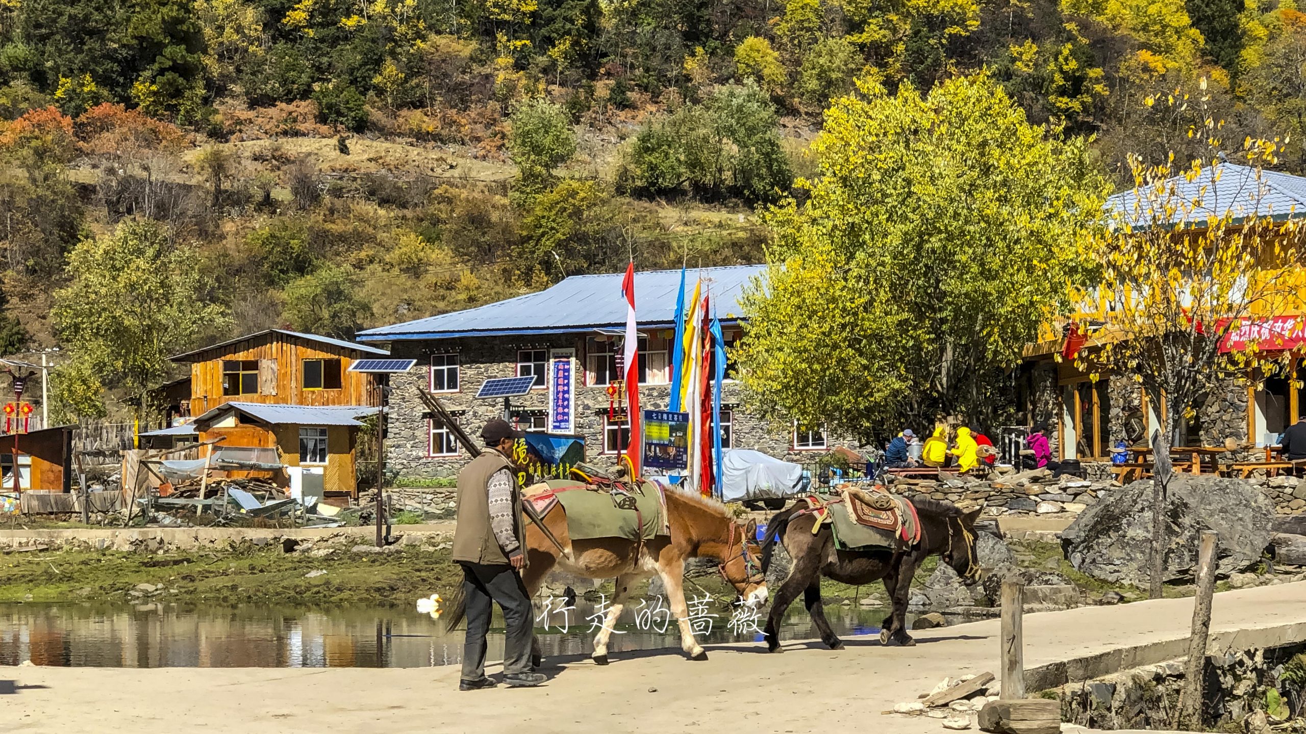村儿里不是正在铺水泥路嘛,已经快铺到这里了,藏族老板过来给房子加固,钻头一开的声音就从世外桃源秒回现实生活哈哈,小陈对这儿貌似兴趣缺失,我们就向下雨崩出发。