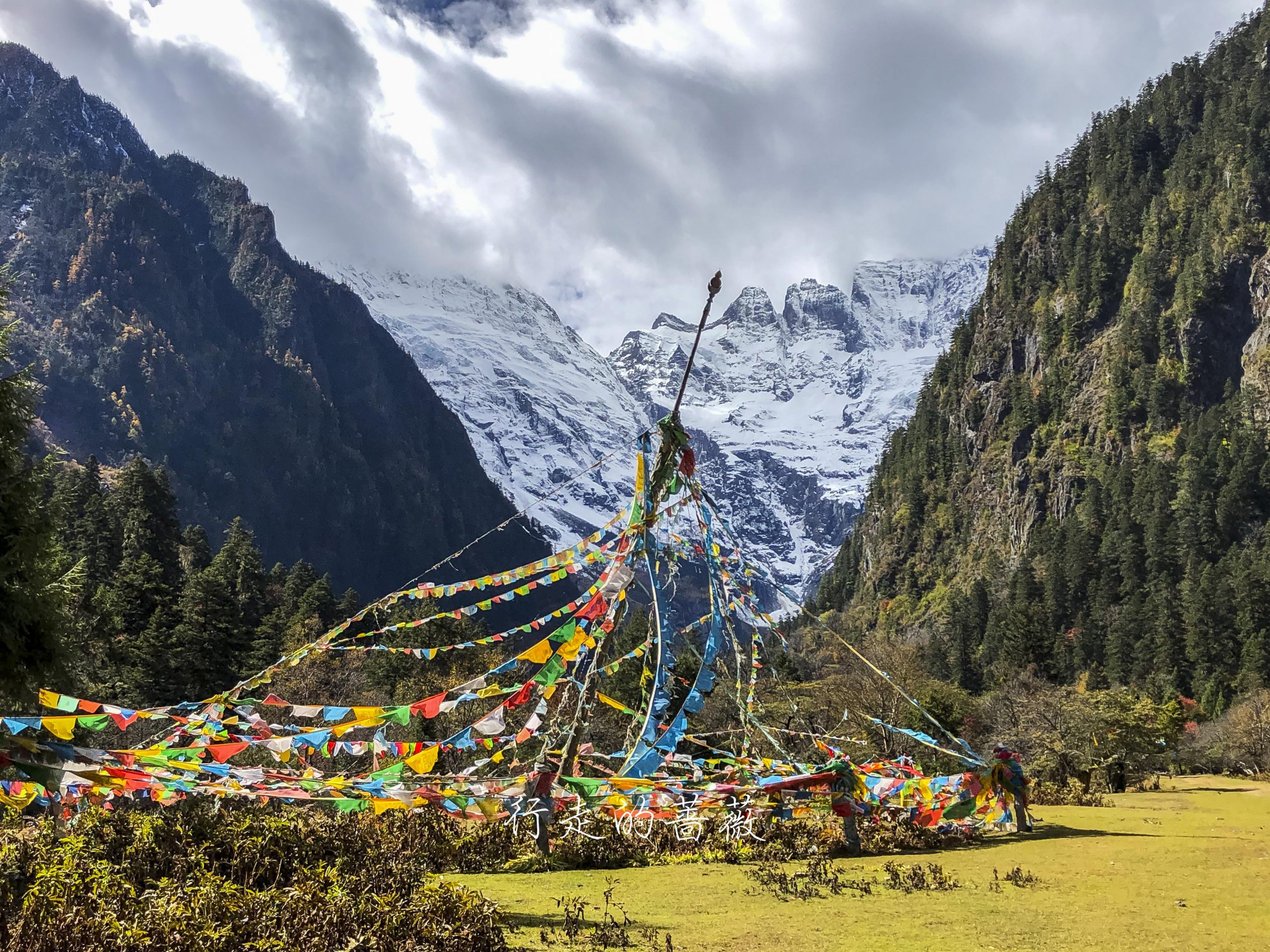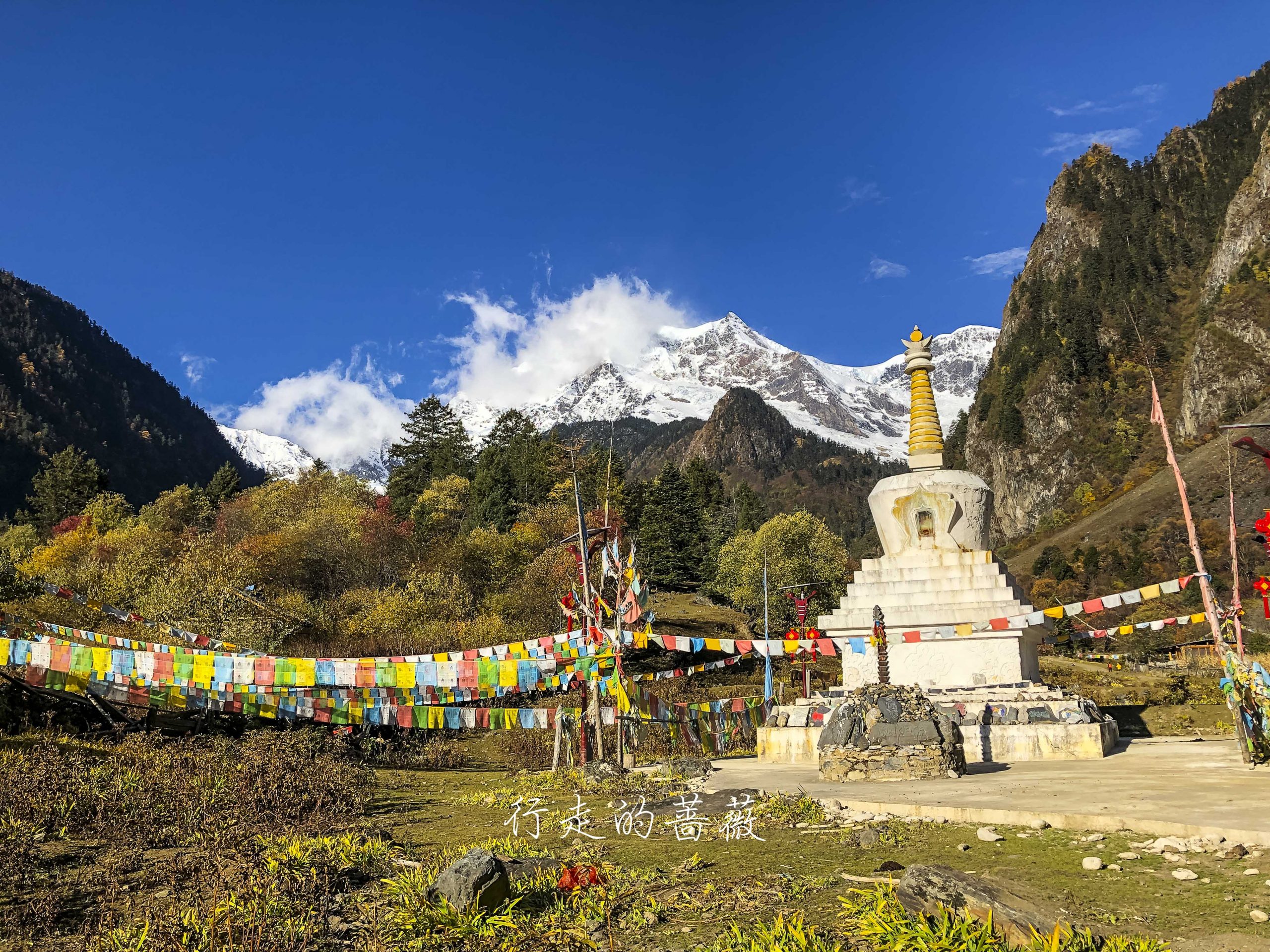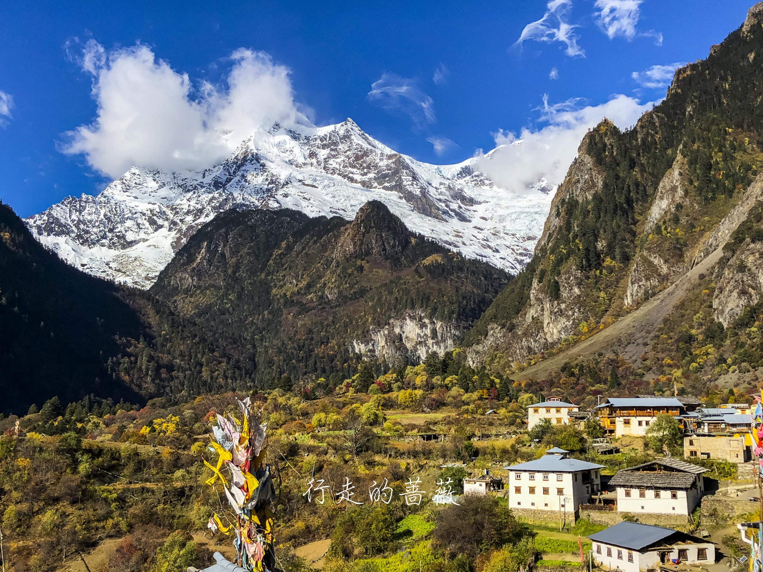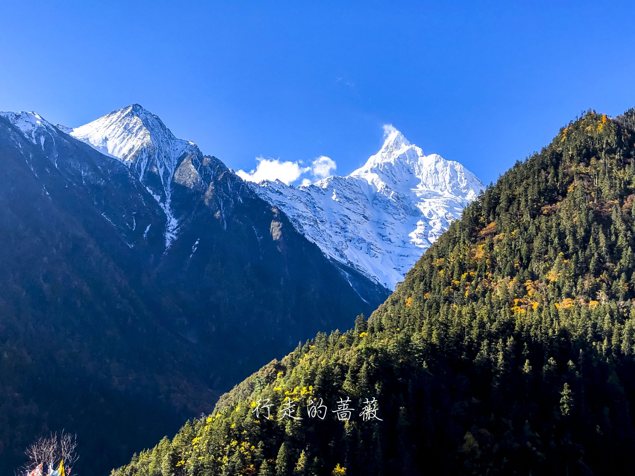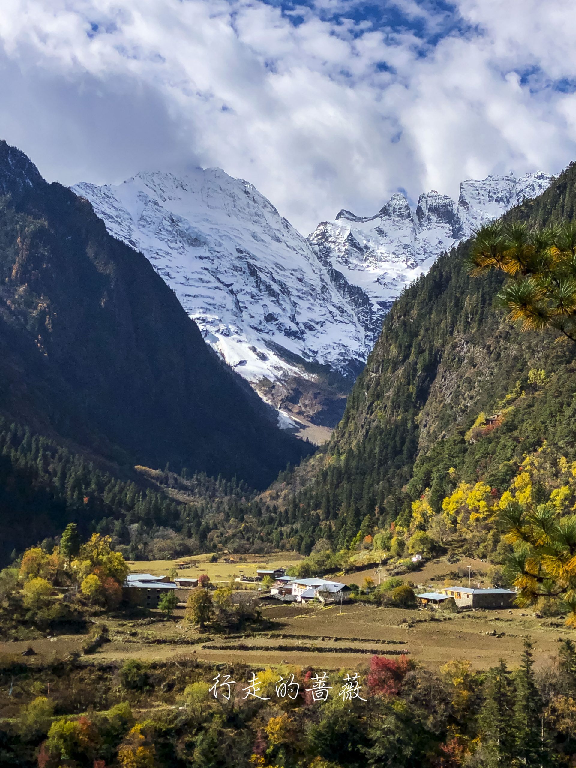 下雨崩经典的拍照角度,可以看到神女峰和五冠峰还有倒影。神女峰刚才在上雨崩还能看到顶呢,很快就被云盖住了。很多人都误会了,其实上/下雨崩村都是看不到最高峰卡瓦格博的,可以看到的是神女峰、五冠峰、将军峰。