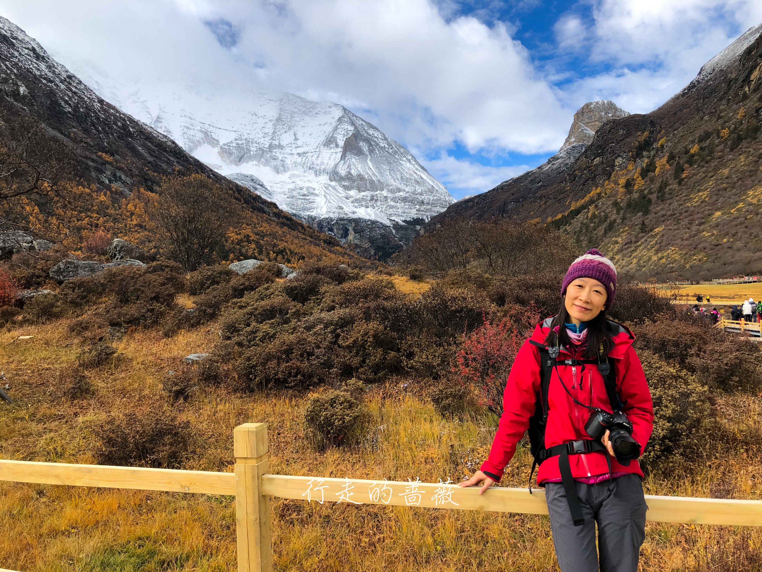 开始的路非常的平坦,风景真的超赞。不得不说亚丁是我来过的为数不多的,本尊比照片还好看的地方。通常看到照片都觉得好美啊,可现实一看哦也就那样而已。我自己也摄影,所以知道照片的欺骗性有多大。但是亚丁实在是太惊艳了,也许是因为秋天所以格外美。个人强烈推荐十月底的秋天来,虽然天气有点冷,含氧量也有点低,但是真的是好漂亮的颜色,而且好天气的几率也高一些。今天天气其实算不上完美,还是有一面非常的多云,第二天我们走短线的那天其实天气时最好的。但是这样已经很幸福了,没什么可抱怨的。