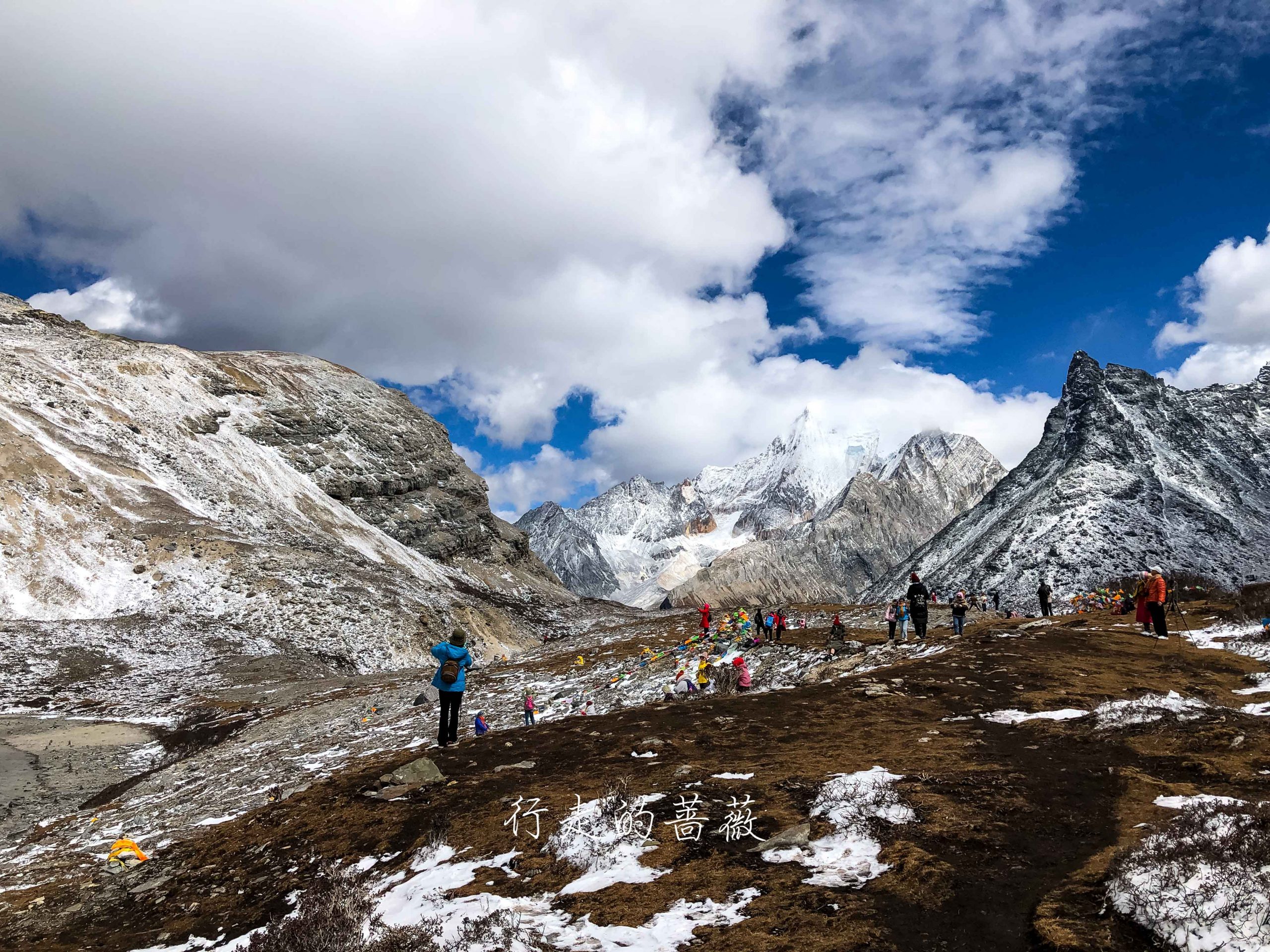 最后有一段稍微有点陡的坡需要爬爬爬,我们出发的时间和大部队是差不多的,都是一早从稻城来的。所以路上很多人,也有点喧嚣。很多人都边走边吸氧气。。。这是怎样的一种精神啊!回来以后嘉嘉说细细是冒着生命危险爬山,因为还背着氧气瓶呢,哈哈哈,虽然也没用到。确实,我也是第一次背氧气瓶爬山。感觉这种便携氧气瓶都没在国外见过,只有国外医生给开的著名的会手抖的抗高反药。偶尔遇到已经开始下山的人,他们大概都是早早爬上来的,但是不论在哪一段问还有多远,他们的回答都是还有一小时。。。感觉路都白走了,永远还差一小时!路上的路标感觉距离都有问题,也不知道标的是直线距离还是垂直距离欸,反正标注距离都很短,但是走起来却没个完。