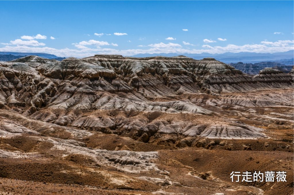 进入札达土林,画风突变,是不是很有科罗拉多大峡谷的调调。这种地貌在地质学上叫河湖相,成因于百万年前的地质变迁。据地质学家们考证,一百多万年前,扎达到普兰之间是个方圆500多公里的大湖,喜马拉雅造山运动使湖盆升高,水位线递减,冲磨出“建筑物”的层高,历经风雨侵蚀,在壁立陡峭的山岩上雕琢出今日的模样。